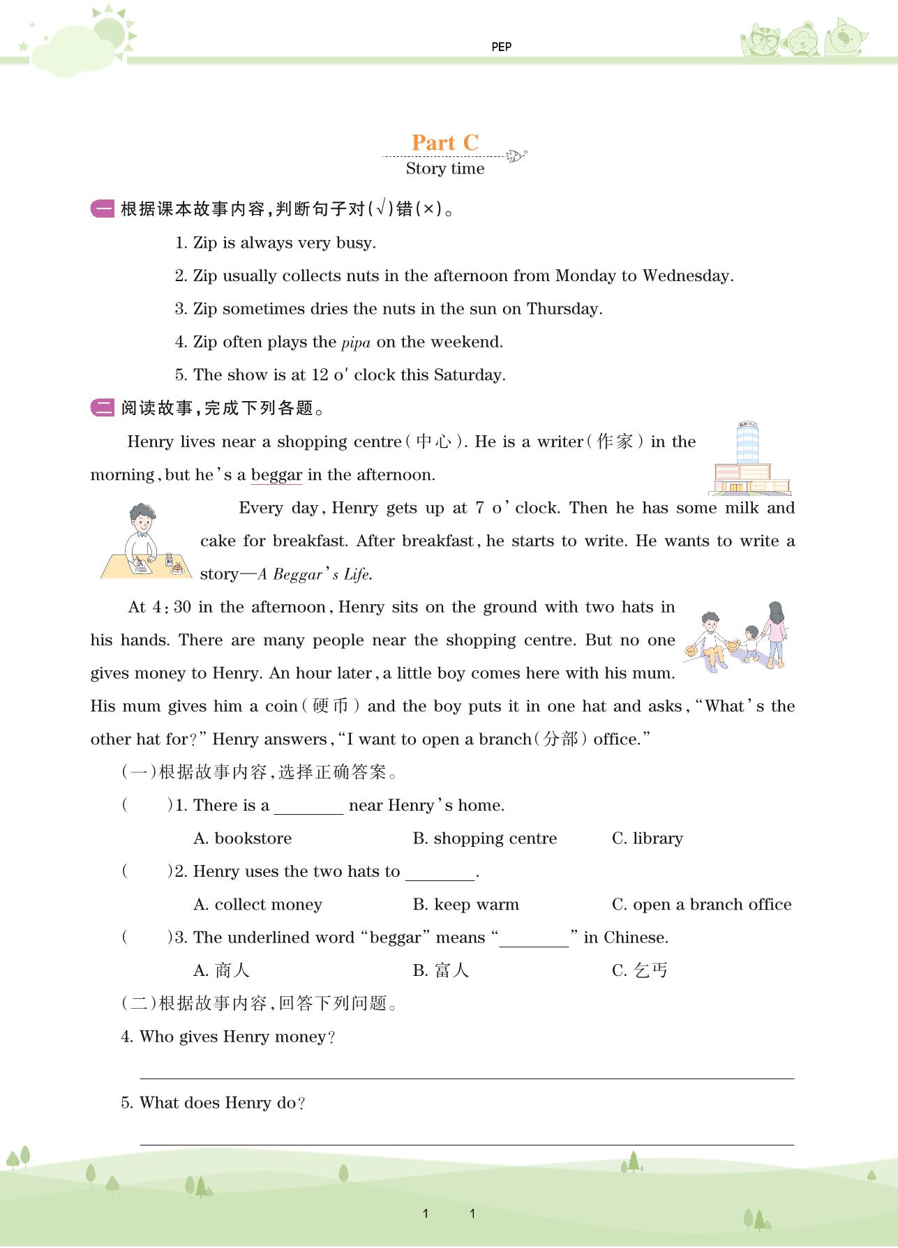 2021下册五年级英语PEP版 Unit 1 Part C Story time