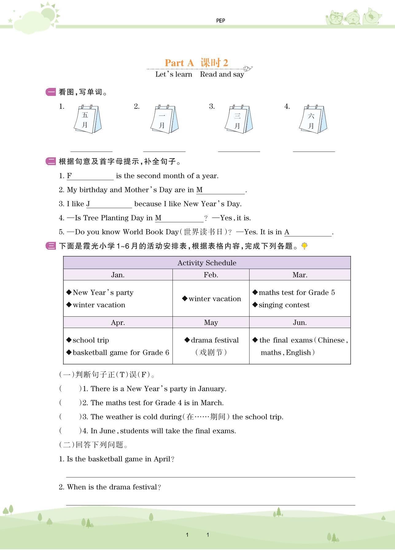2021下册五年级英语PEP版 Unit 3 Part A—课时 2 Let’s learn Read and say