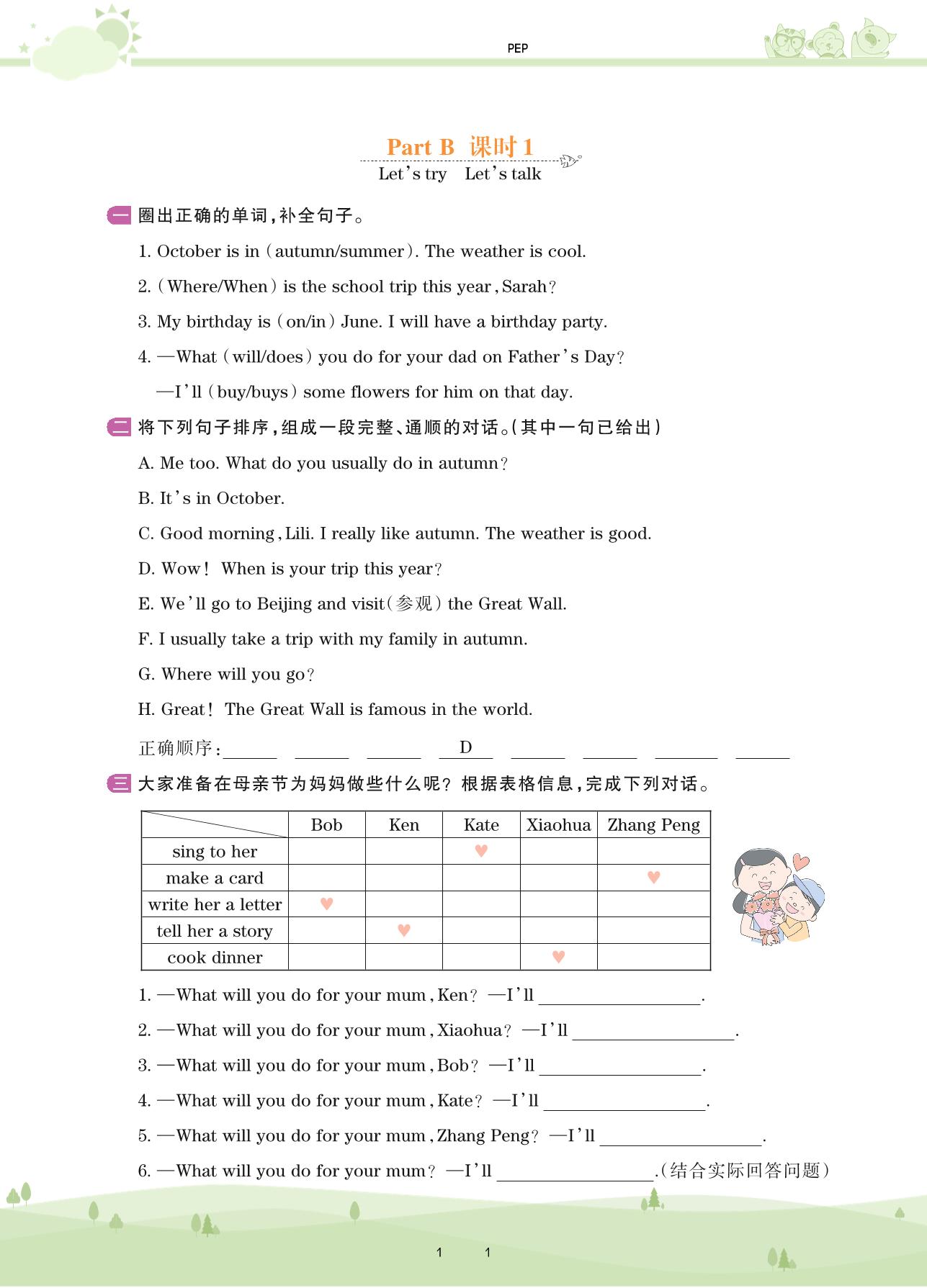 2021下册五年级英语PEP版 Unit 3 Part B—课时 1 Let’s try Let’s talk
