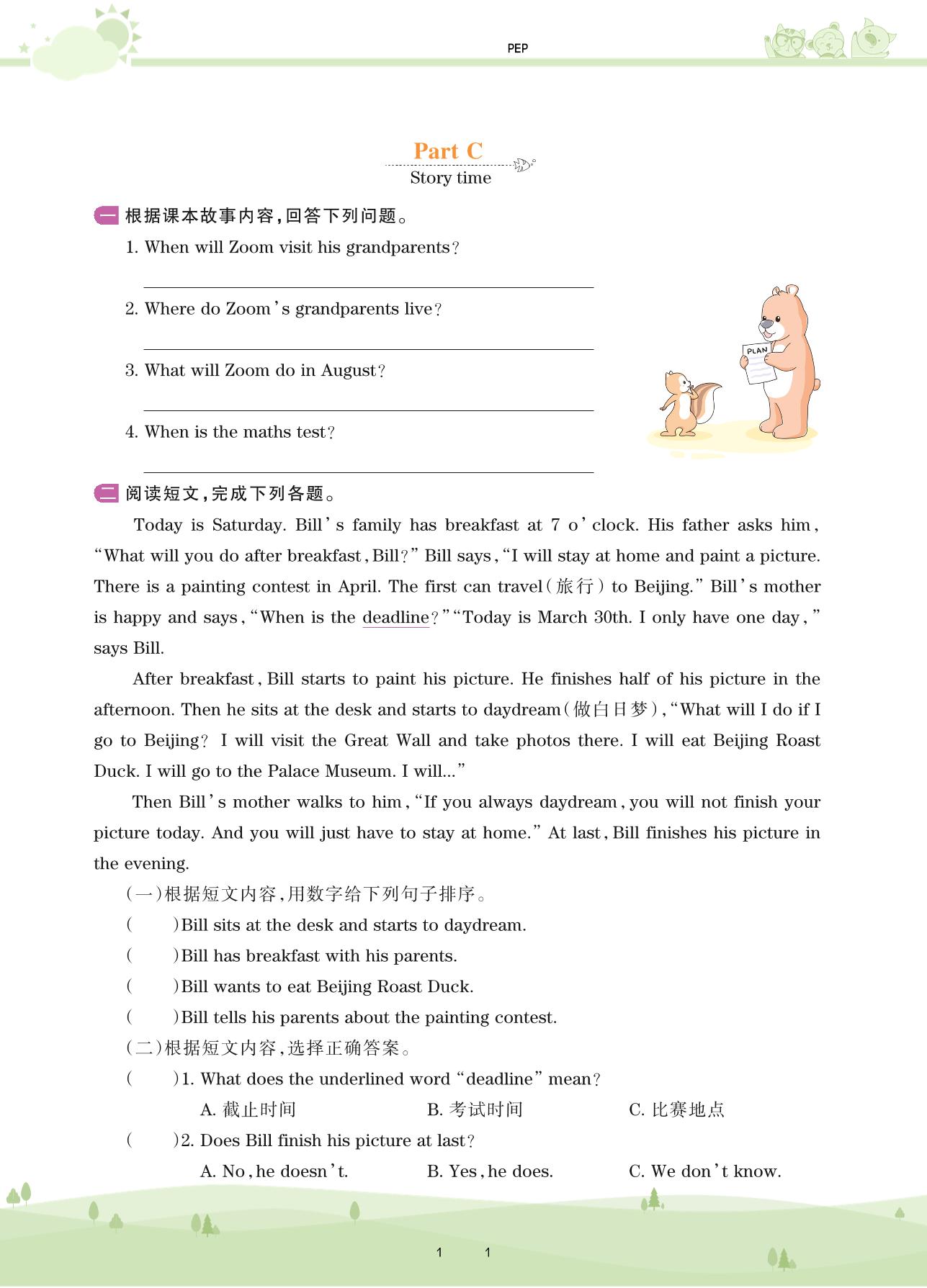 2021下册五年级英语PEP版 Unit 3 Part C Story time