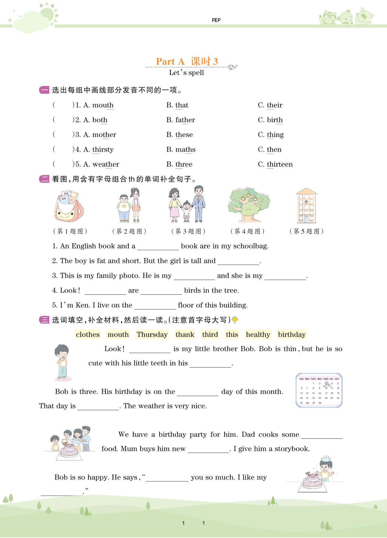 2021下册五年级英语PEP版 Unit 4 Part A—课时 3 Let’s spell