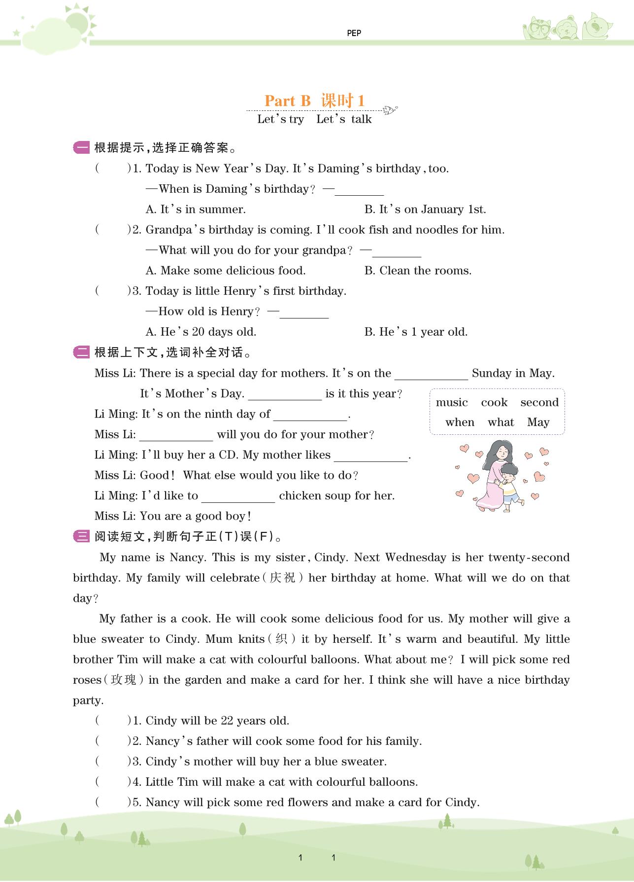 2021下册五年级英语PEP版 Unit 4 Part B—课时 1 Let’s try Let’s talk