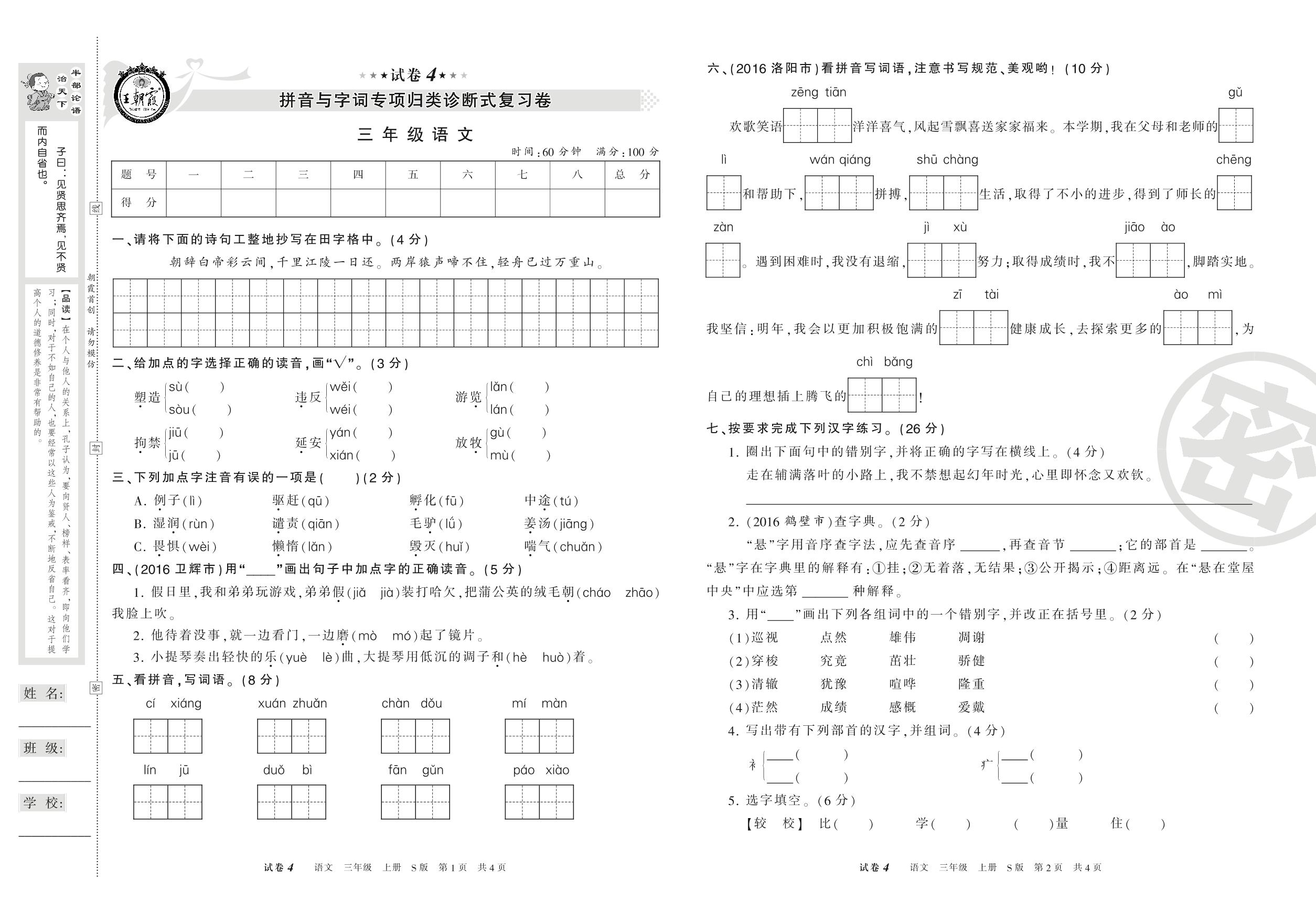 王朝霞期末专项卷三年级上册语文(S版)_R210801101653【4】