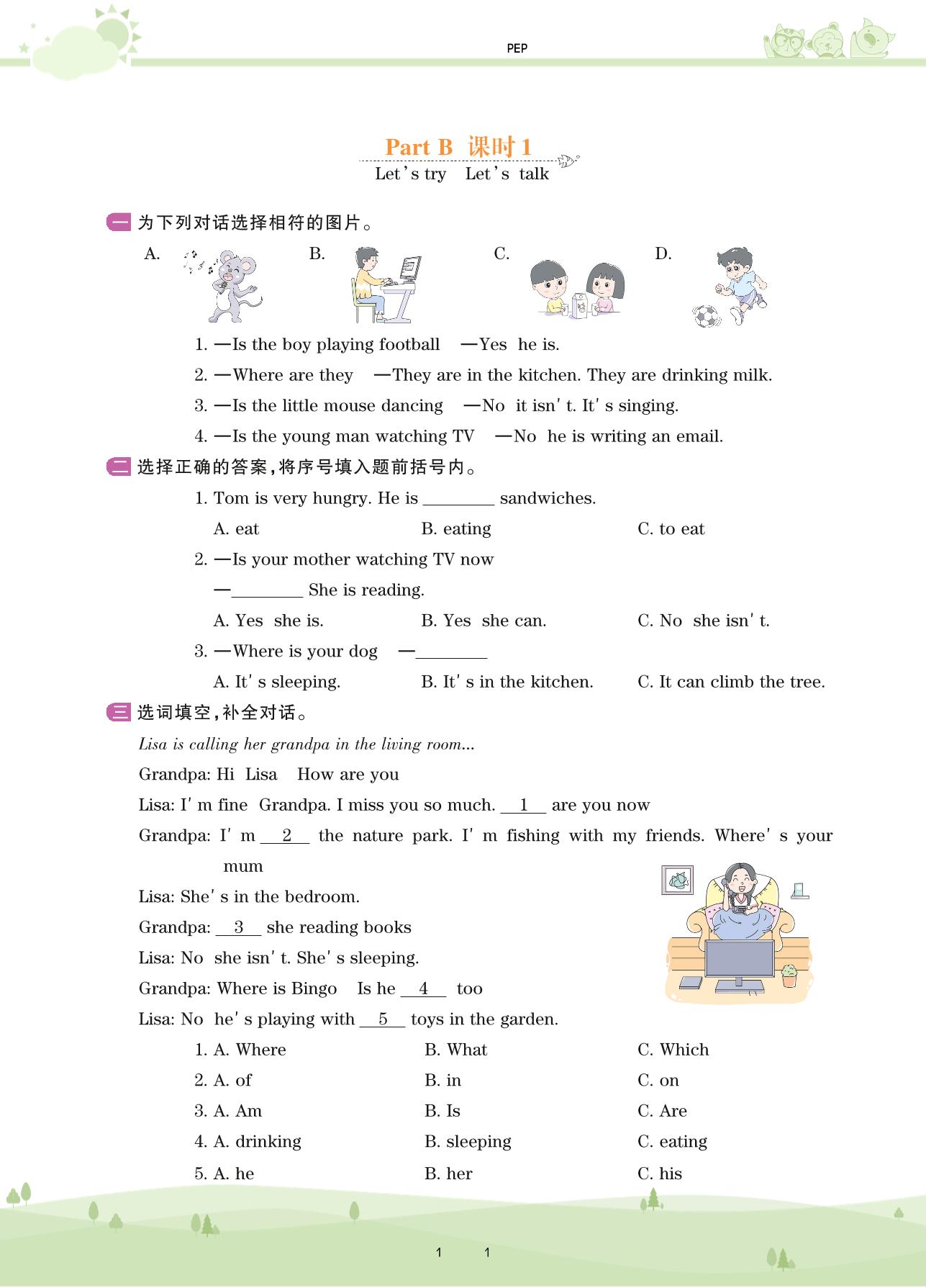 2021下册五年级英语PEP版 Unit 5 Part B—课时 1 Let’s try Let’s talk