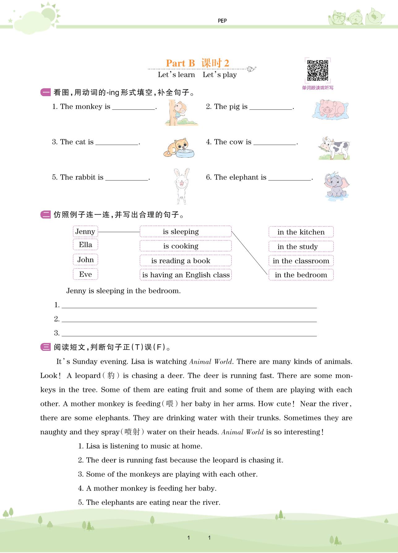 五年级英语人教PEP版(三起始)下册课时作业