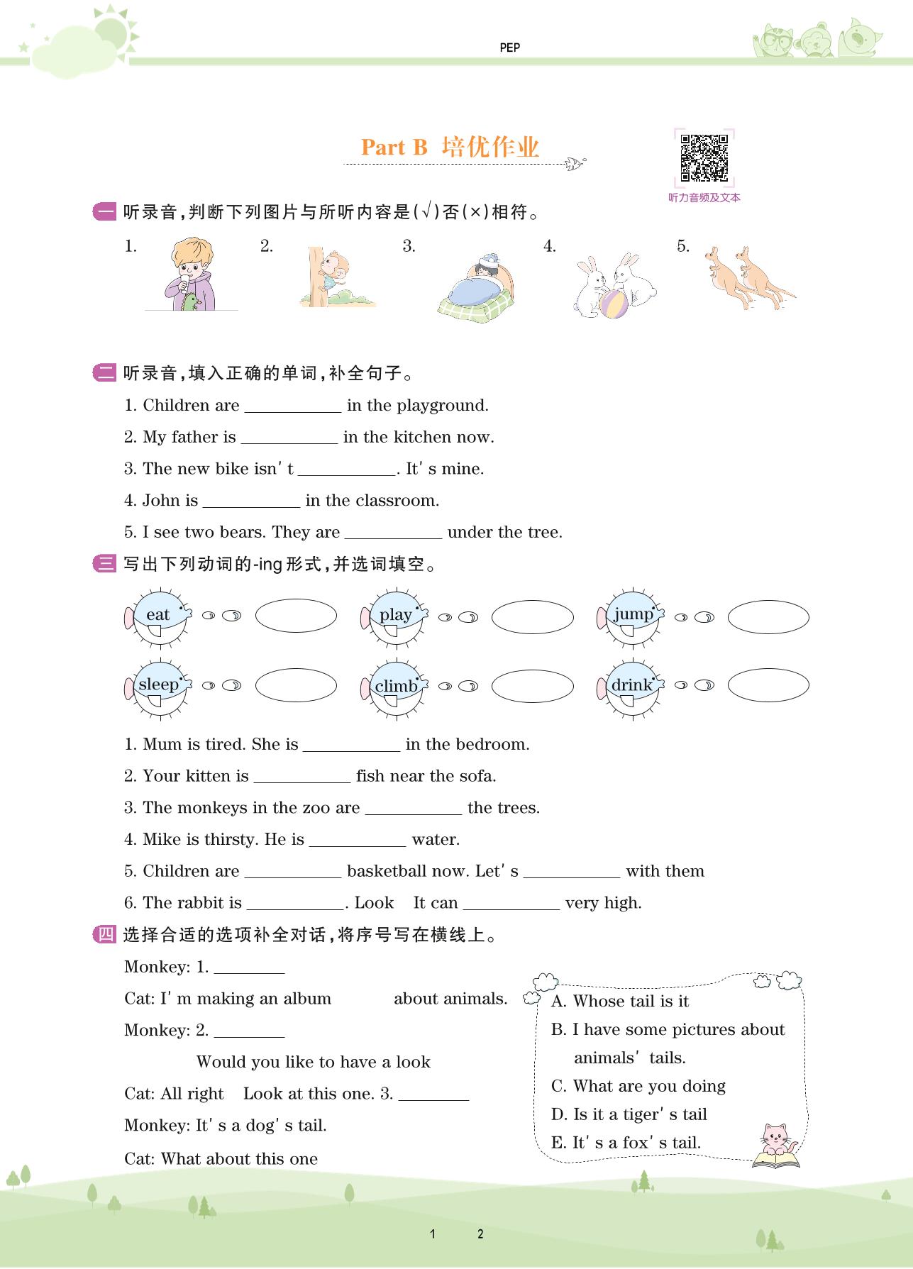 2021下册五年级英语PEP版 Unit 5 Part B 培优作业