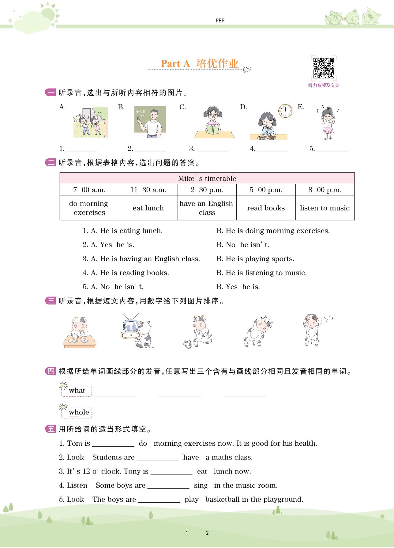 2021下册五年级英语PEP版 Unit 6 Part A 培优作业