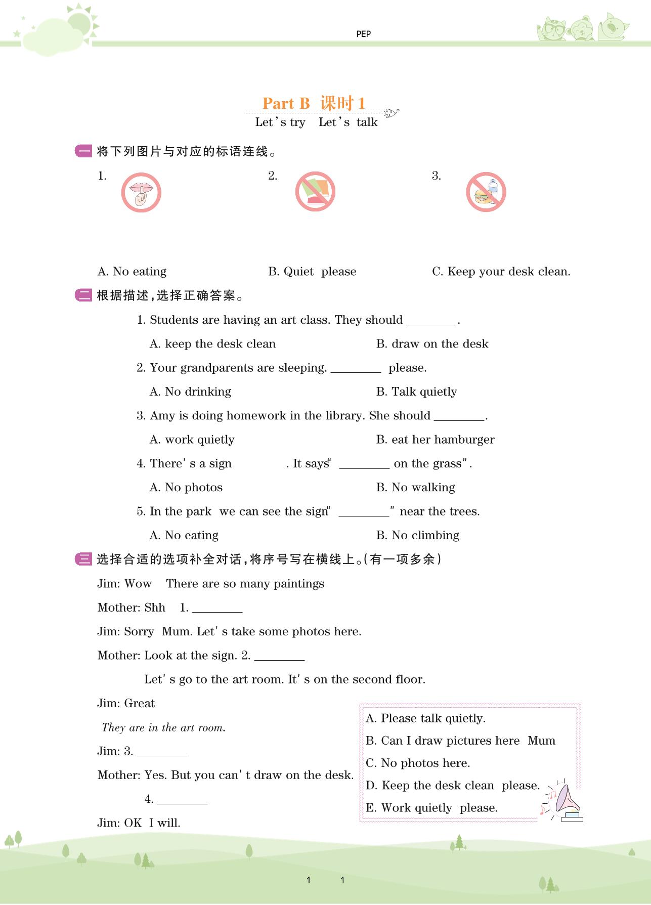 2021下册五年级英语PEP版 Unit 6 Part B—课时 1 Let’s try Let’s talk