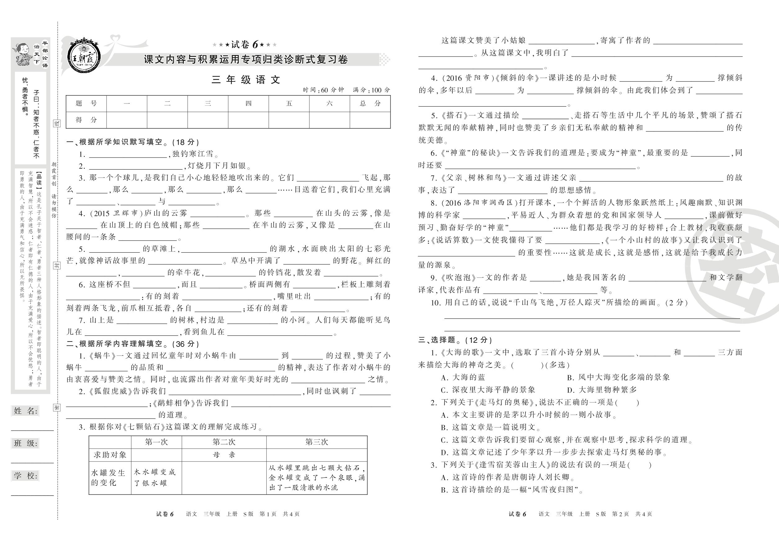王朝霞期末专项卷三年级上册语文(S版)_R210801101703【6】