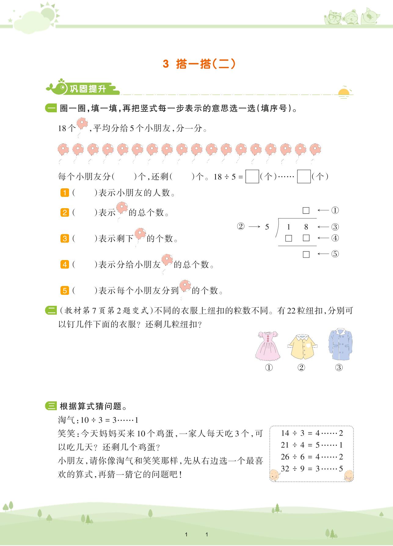 2021下册二年级数学北师版 第一单元 除法——3 搭一搭(二)