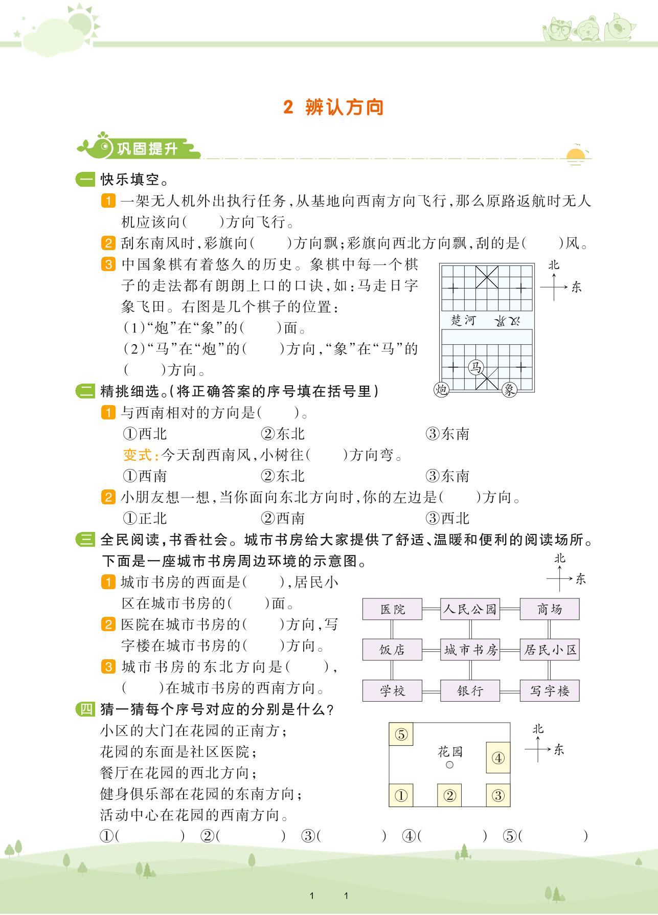 2021下册二年级数学北师版 第二单元 方向与位置——2 辨认方向