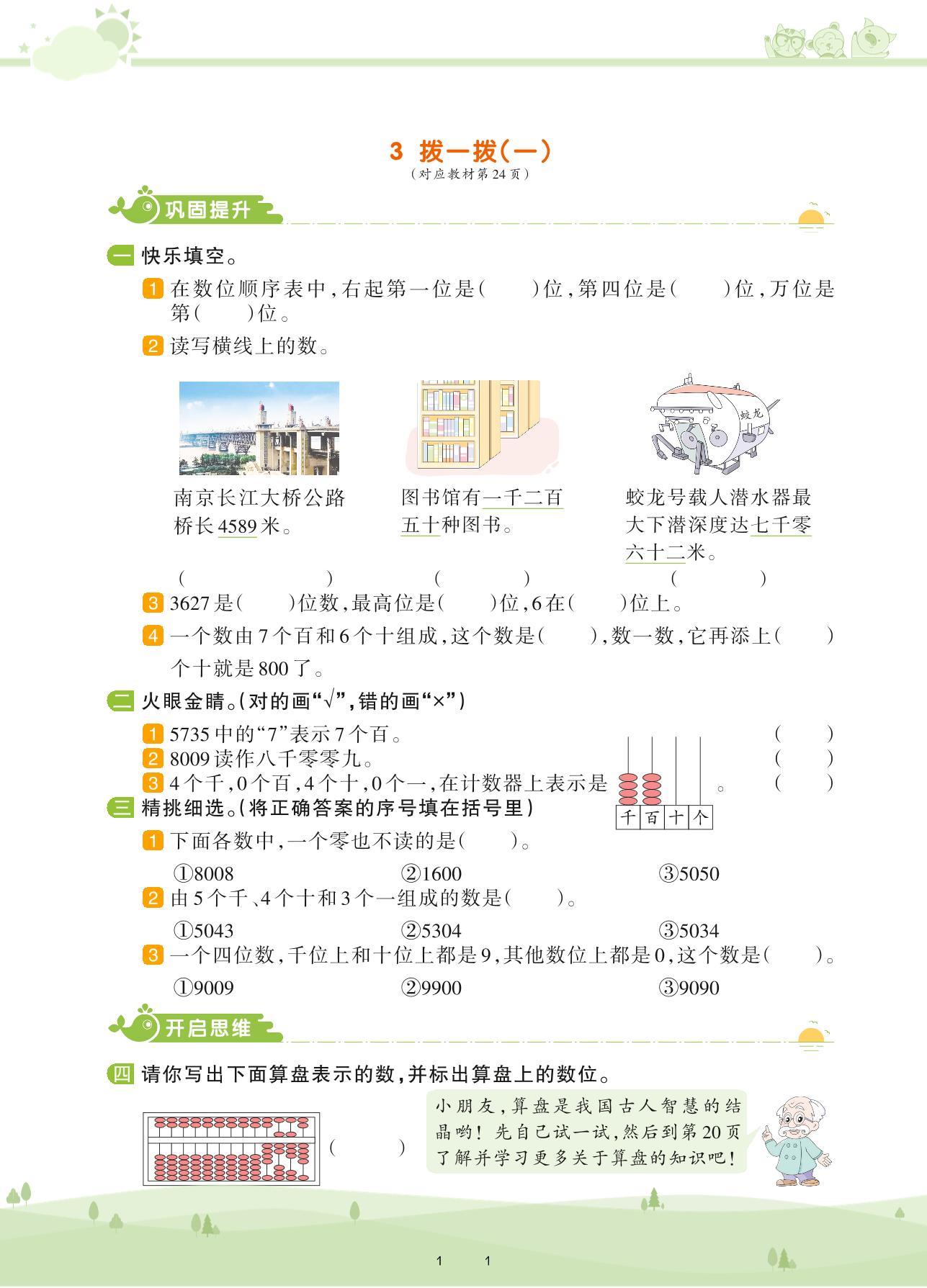 2021下册二年级数学北师版 第三单元 生活中的大数——3 拨一拨(一)