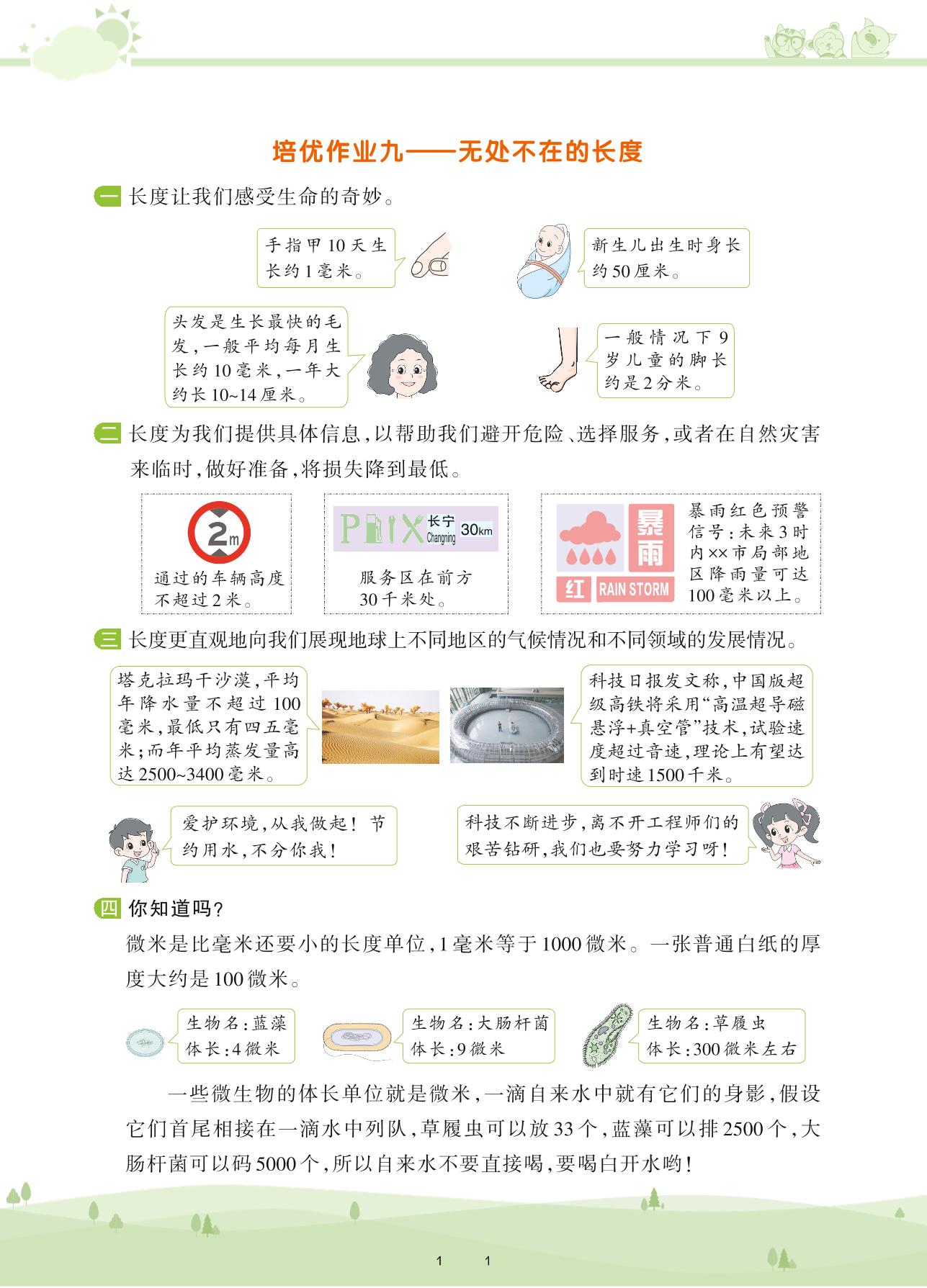 2021下册二年级数学北师版 第四单元 测量——培优作业九 无处不在的长度