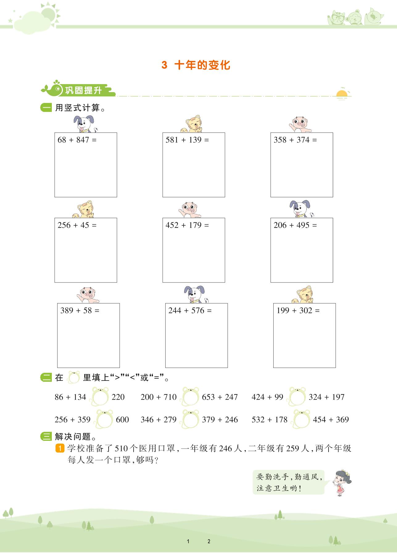 2021下册二年级数学北师版 第五单元 加与减——3 十年的变化