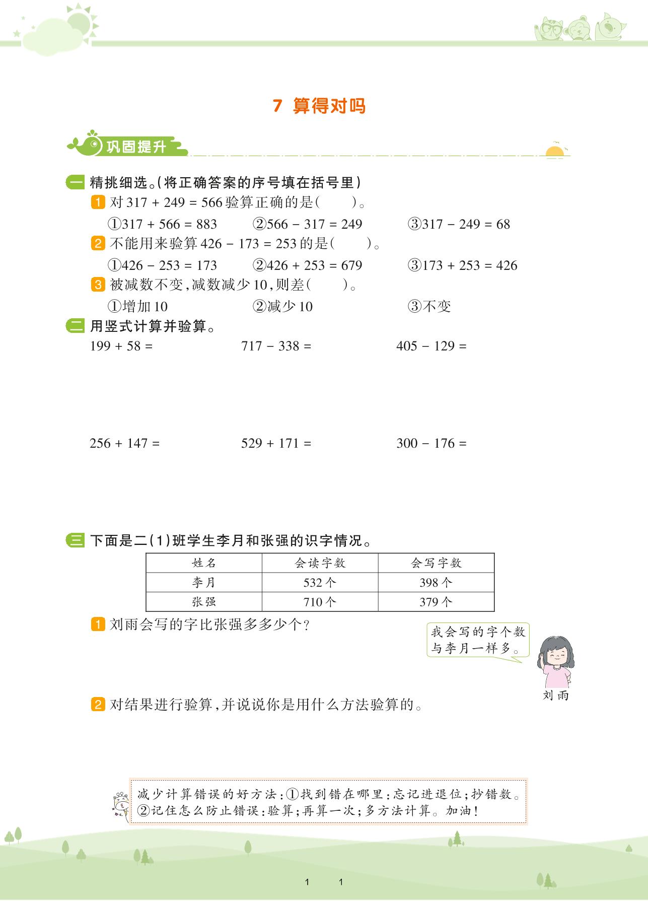 2021下册二年级数学北师版 第五单元 加与减——7 算得对吗
