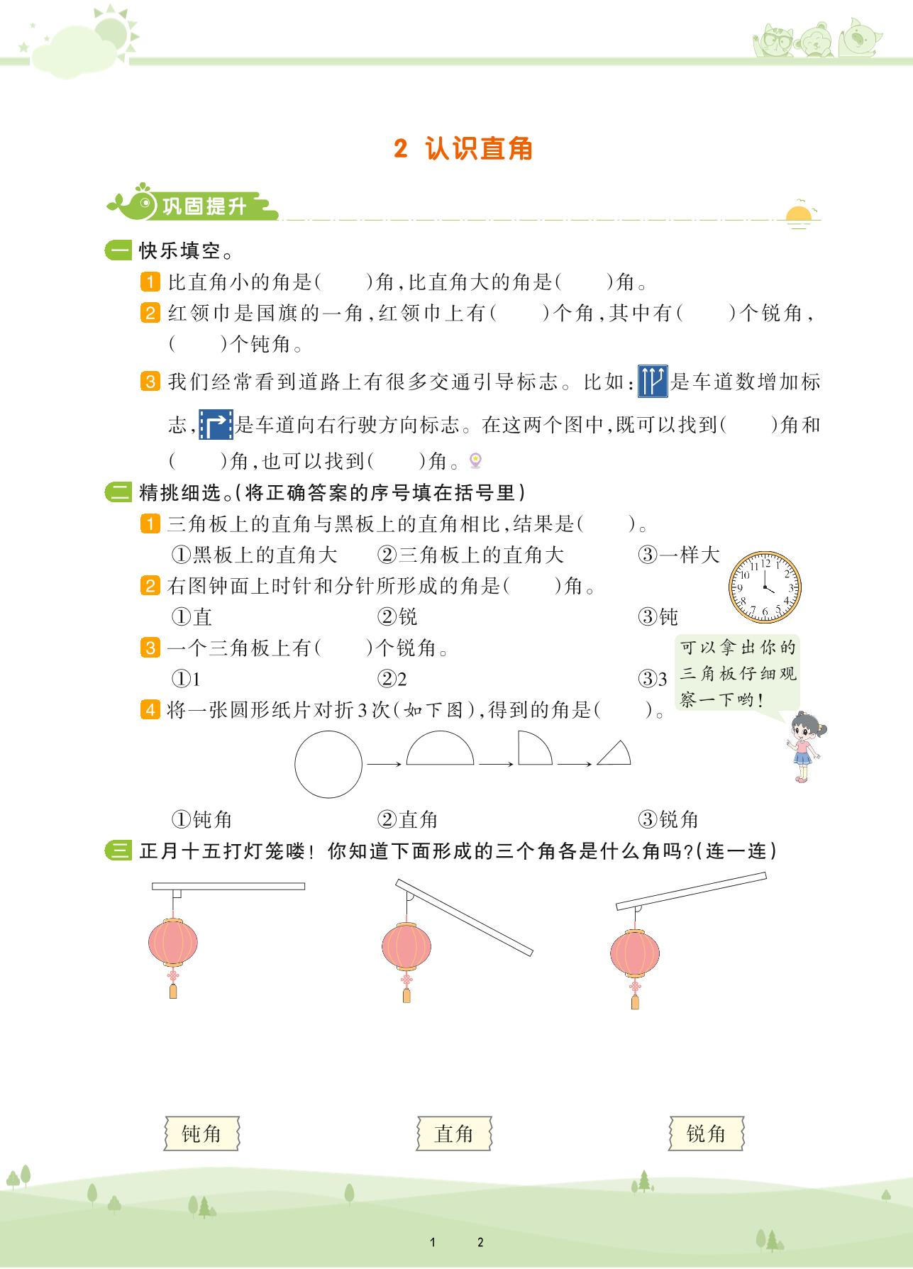 2021下册二年级数学北师版 第六单元 认识图形——2 认识直角