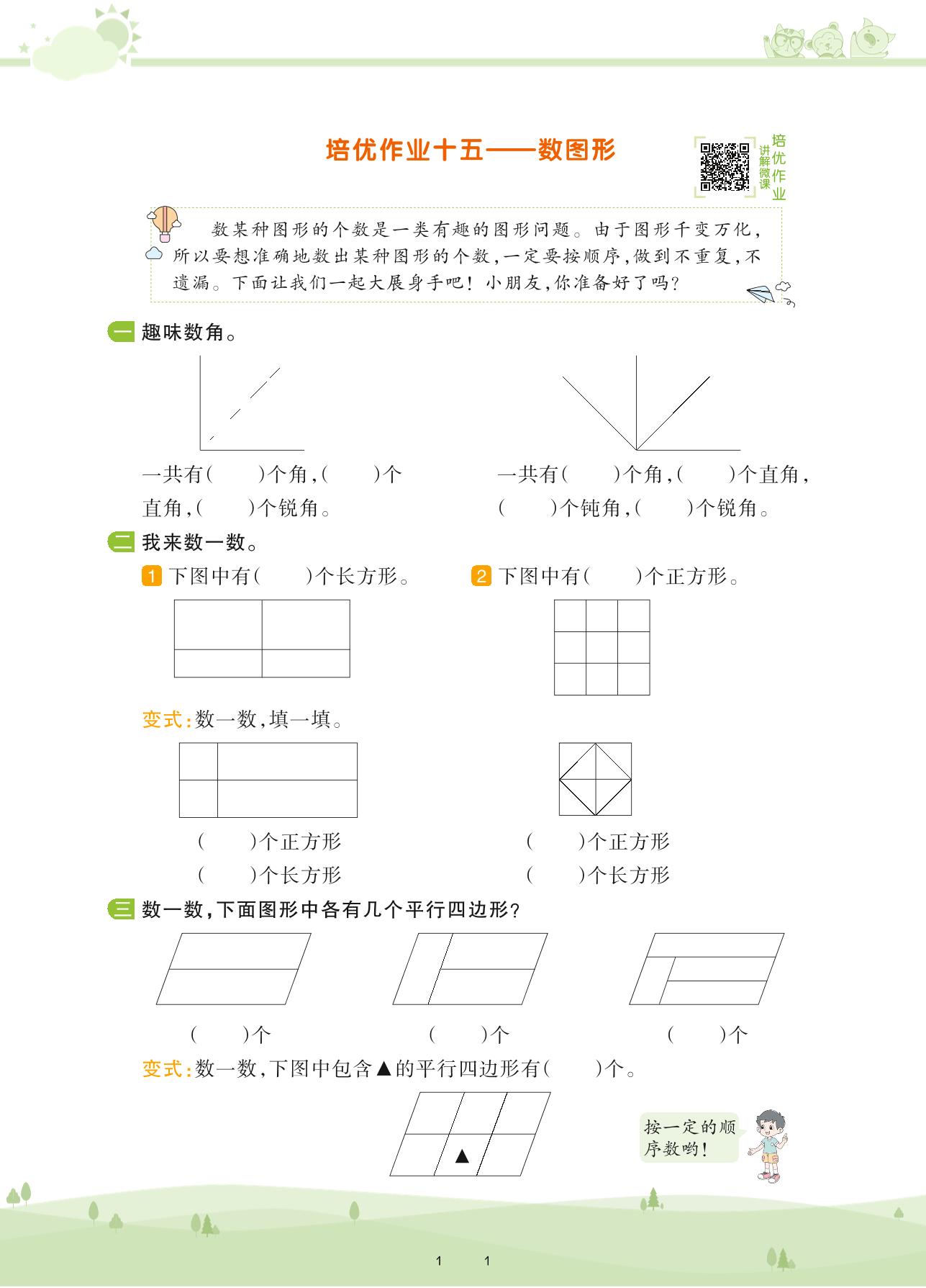 2021下册二年级数学北师版 第六单元 认识图形——培优作业十五 数图形