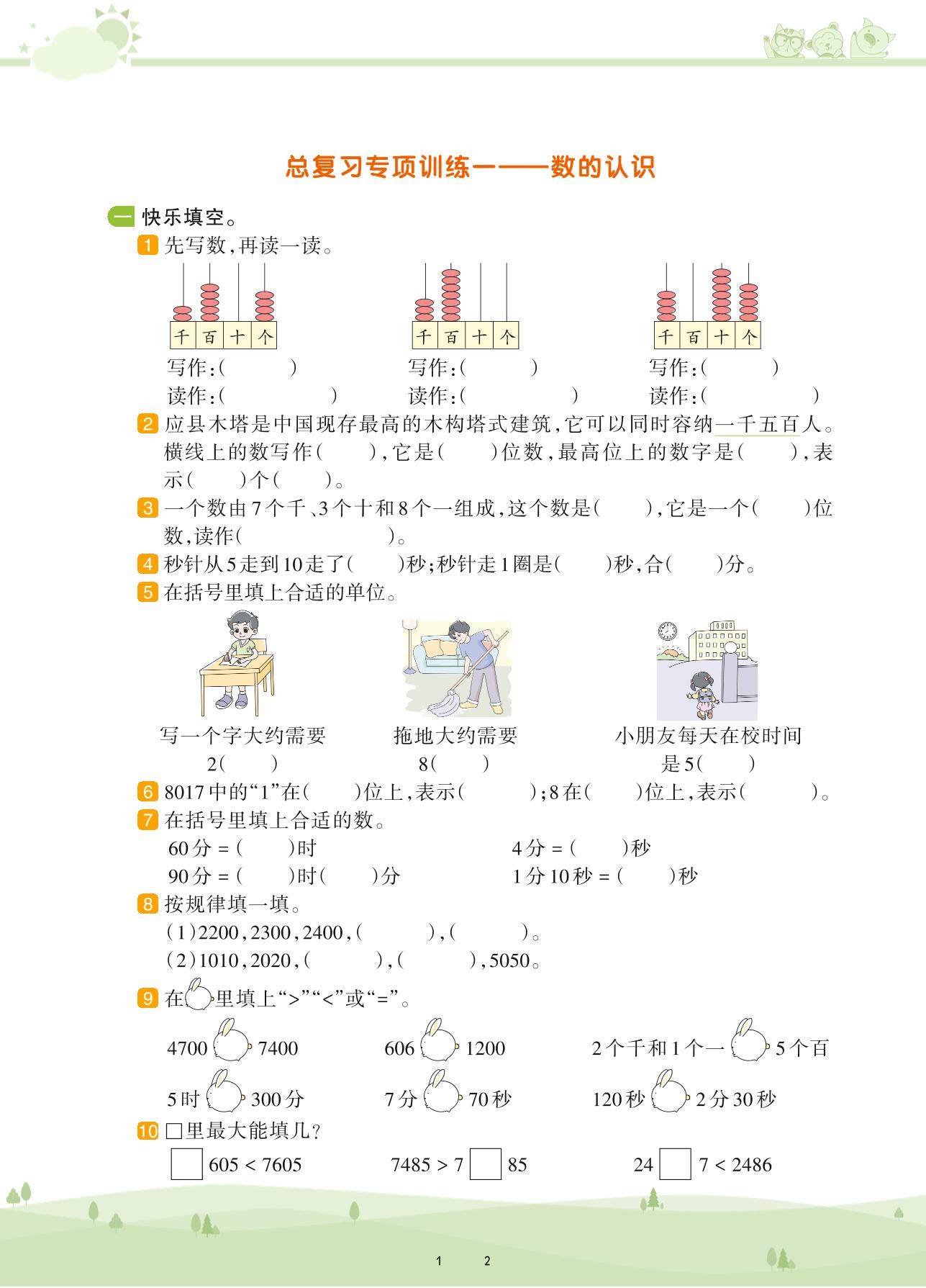2021下册二年级数学北师版 总复习——数的认识