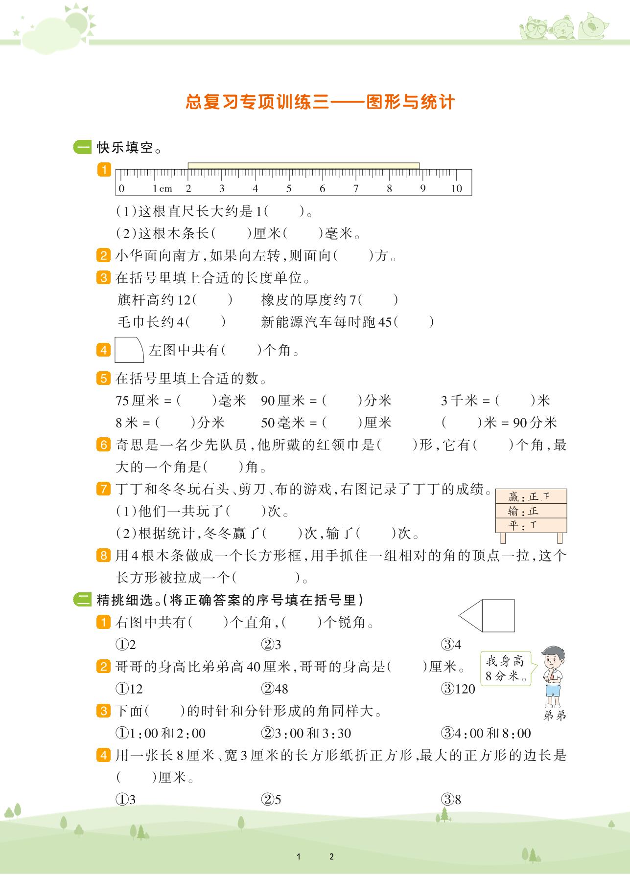 2021下册二年级数学北师版 总复习——图形与统计
