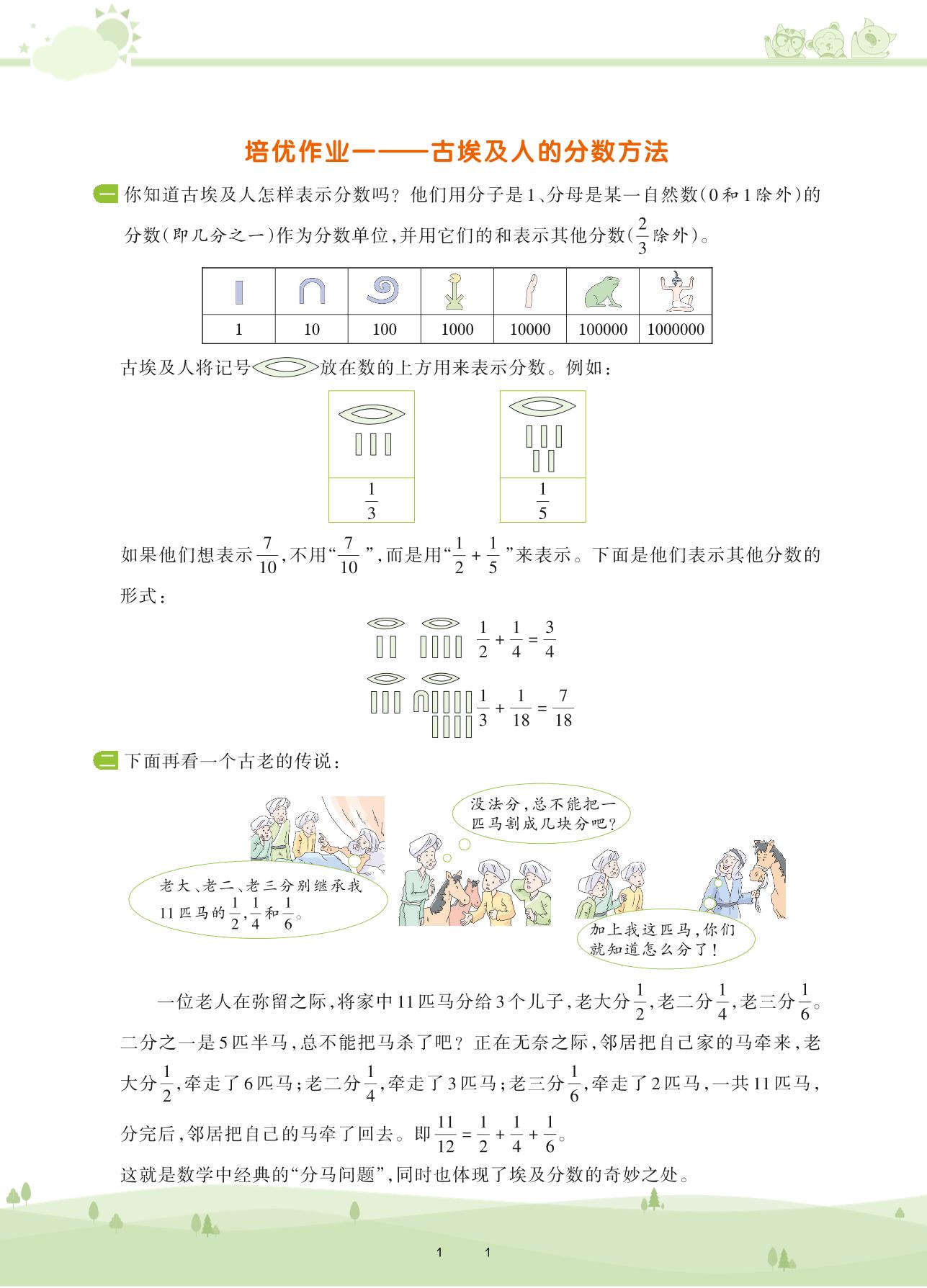 2021下册五年级数学北师版 第一单元 分数加减法——培优作业一 古埃及人的分数方法