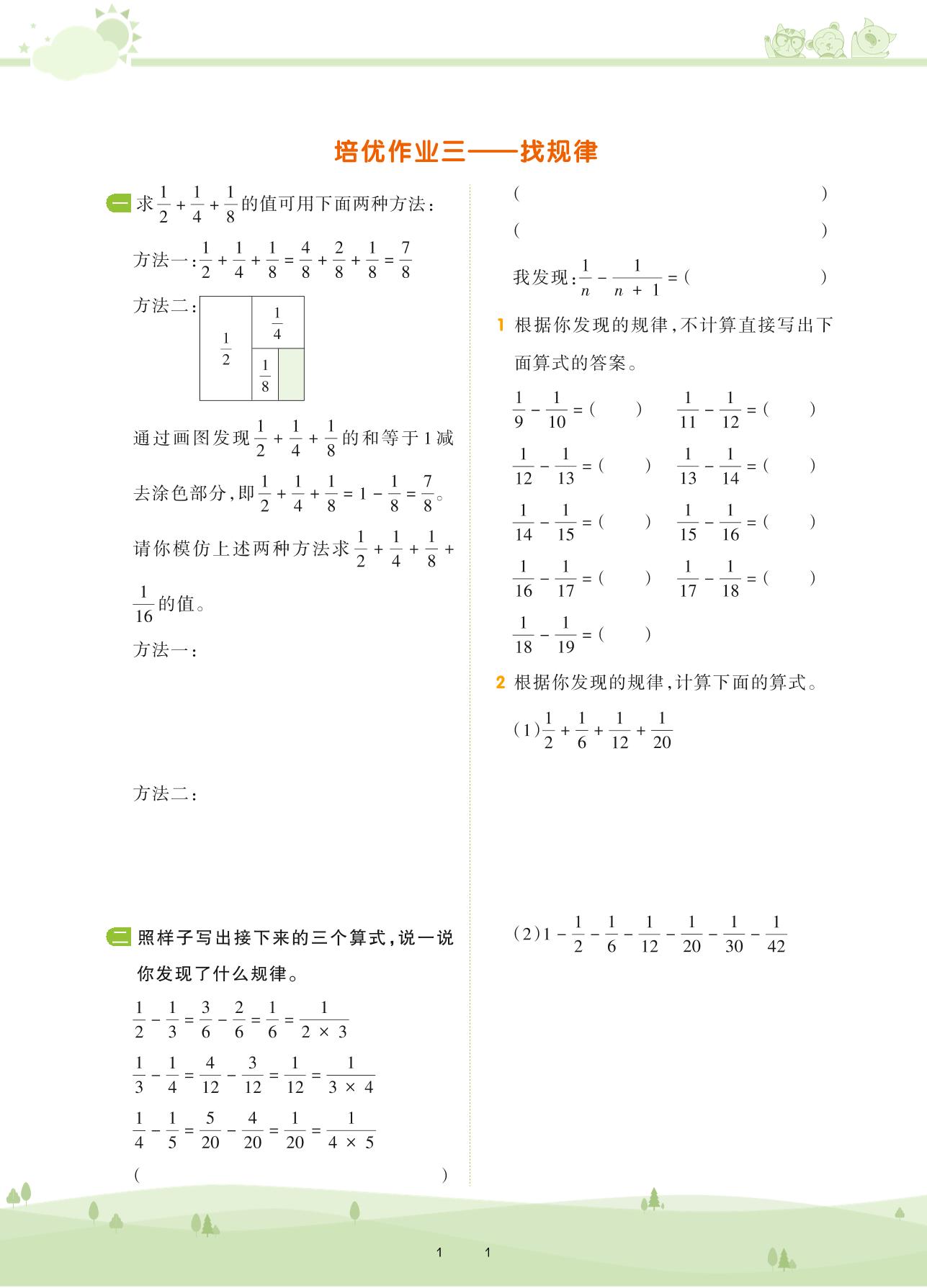 2021下册五年级数学北师版 第一单元 分数加减法——培优作业三 找规律