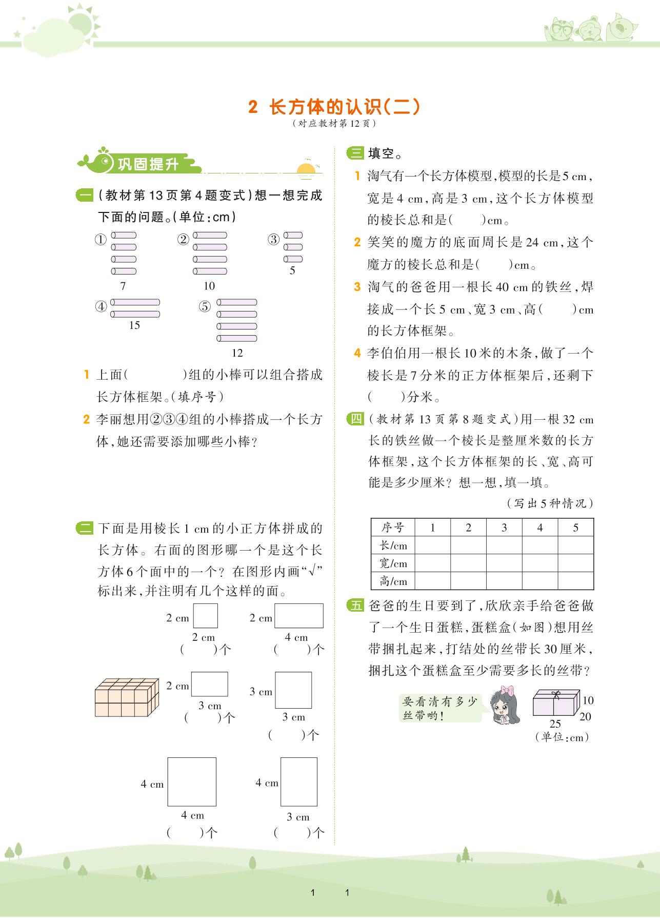 2021下册五年级数学北师版 第二单元 长方体(一)——2 长方体的认识(二)