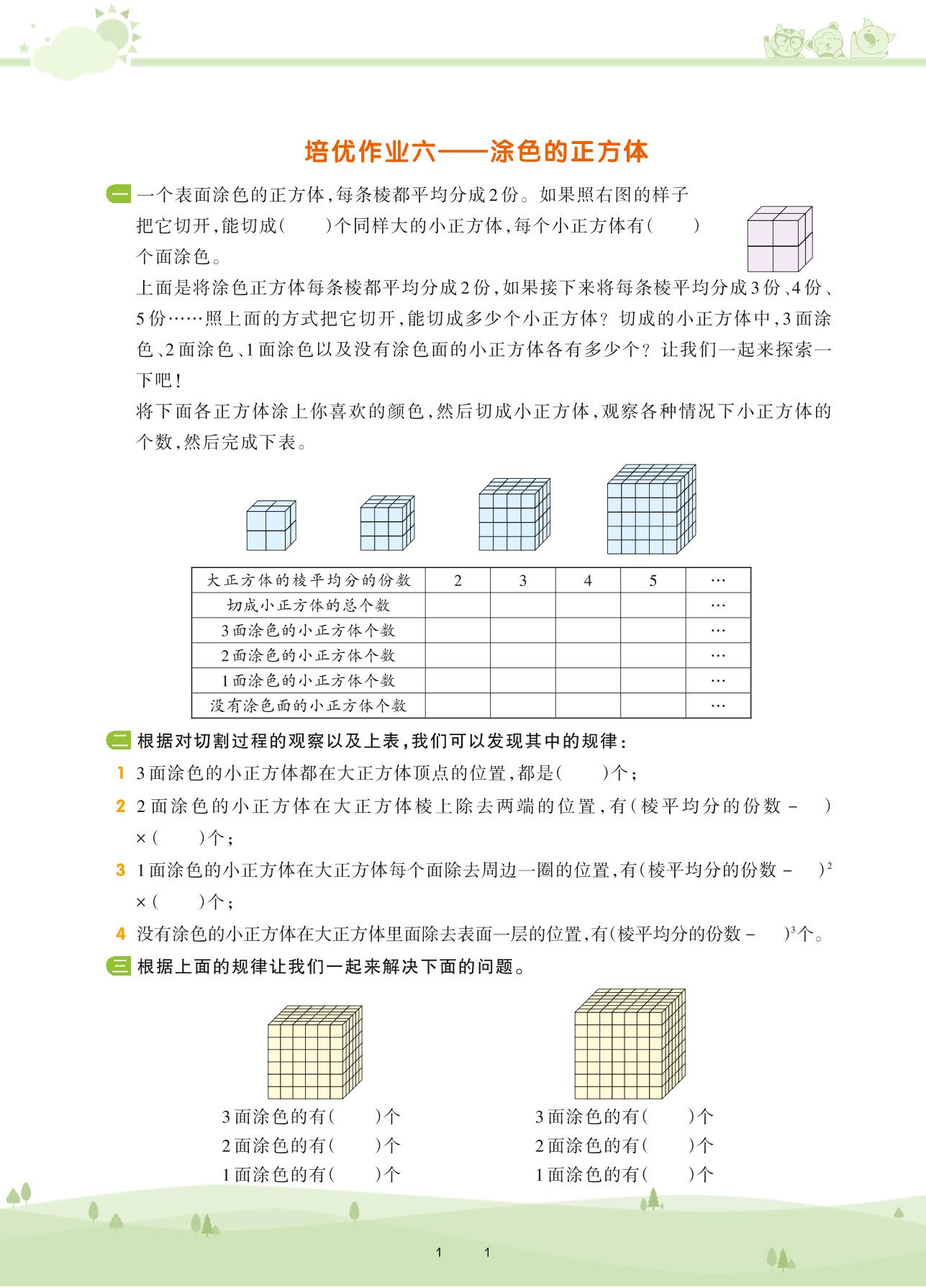 2021下册五年级数学北师版 第二单元 长方体(一)——培优作业六 涂色的正方体