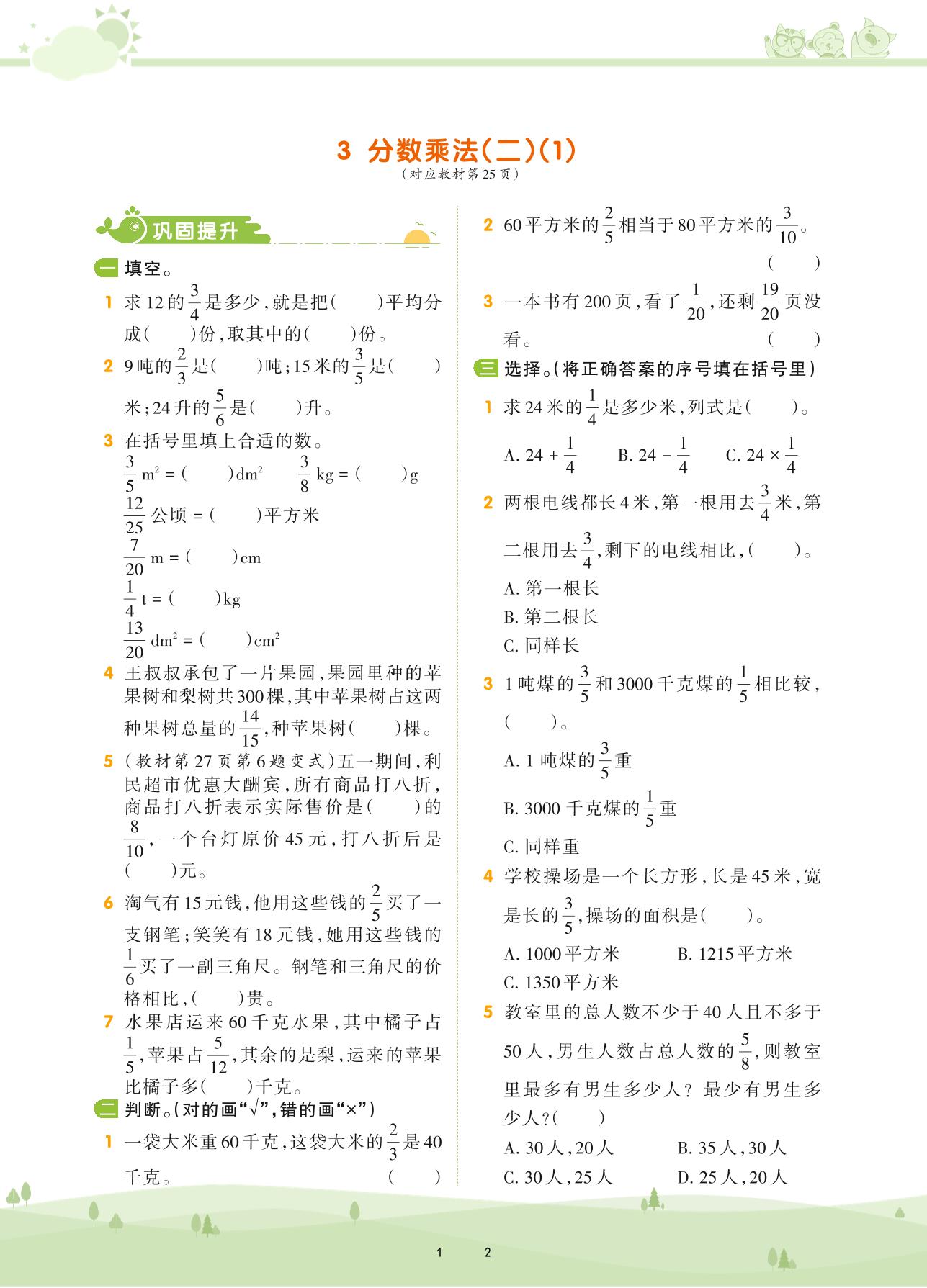 2021下册五年级数学北师版 第三单元 分数乘法——3 分数乘法(二)(1)
