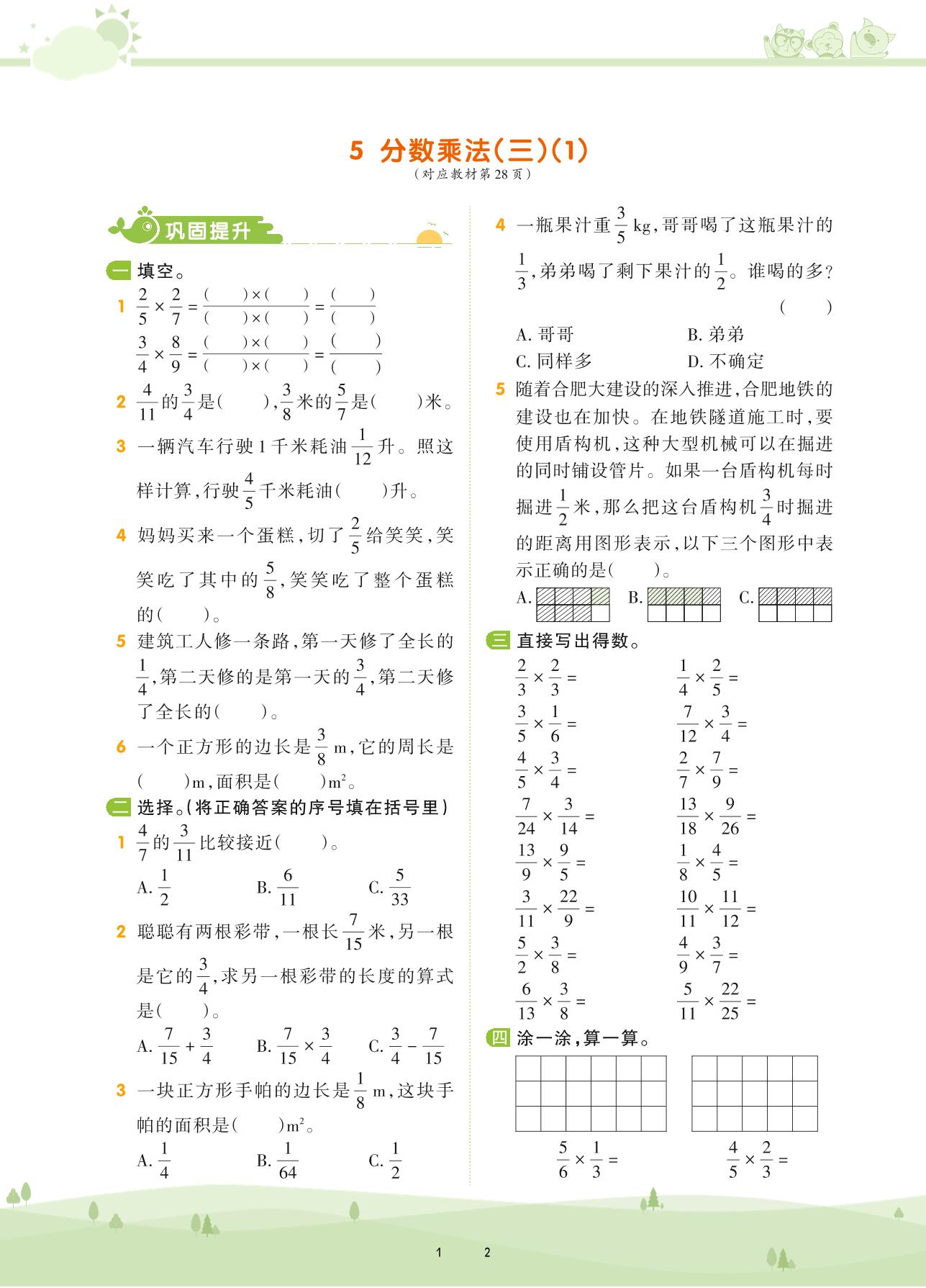 2021下册五年级数学北师版 第三单元 分数乘法——5 分数乘法(三)(1)