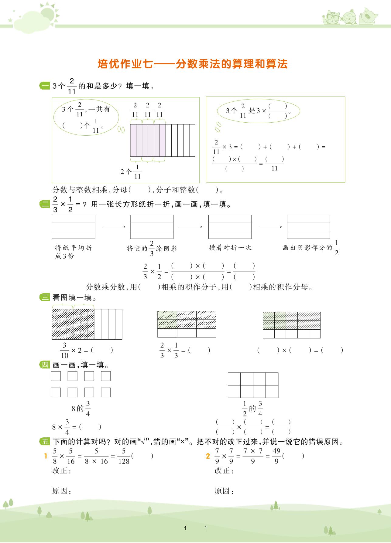 2021下册五年级数学北师版 第三单元 分数乘法——培优作业七 分数乘法的算理和算法