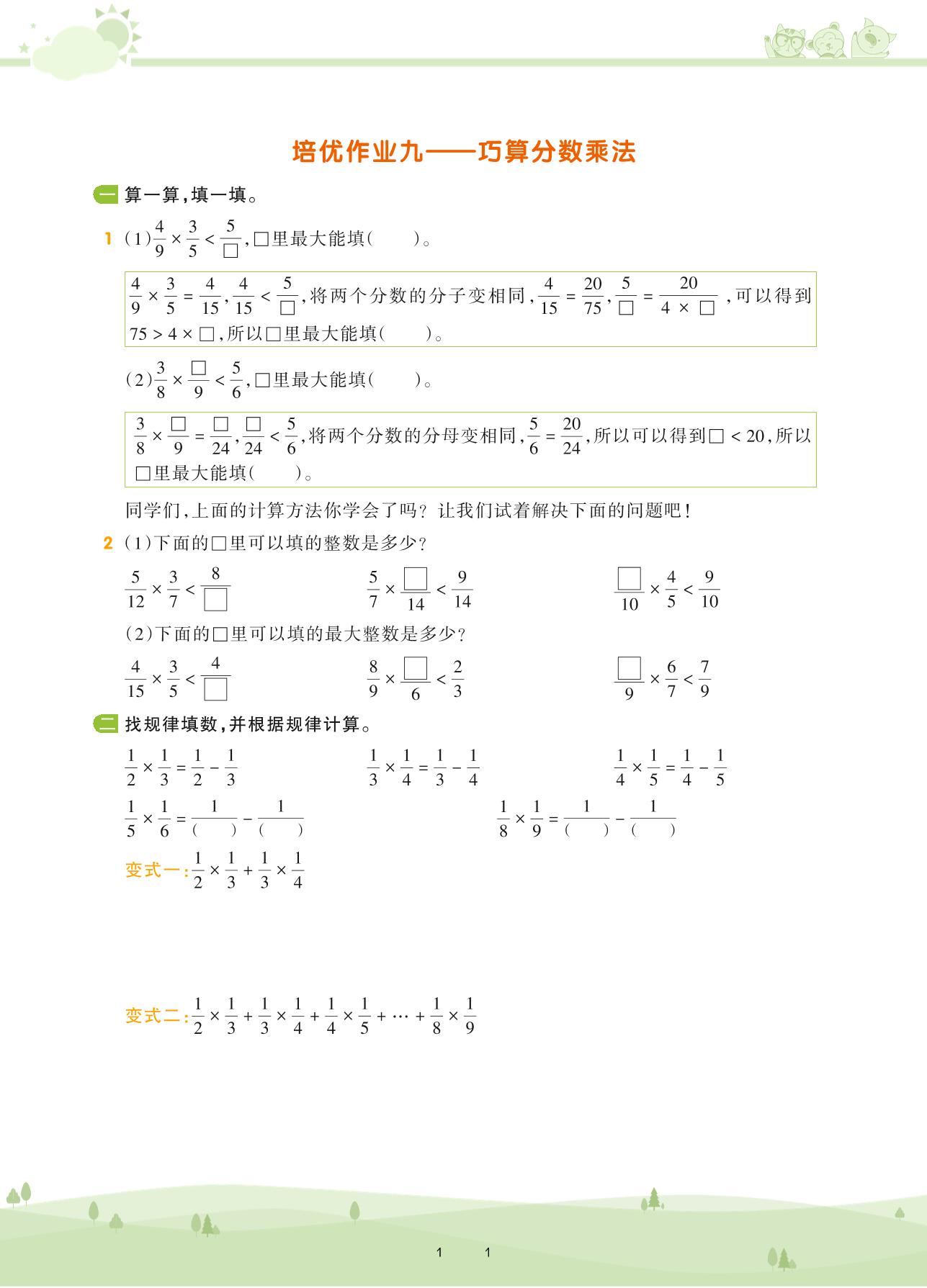 2021下册五年级数学北师版 第三单元 分数乘法——培优作业九 巧算分数乘法