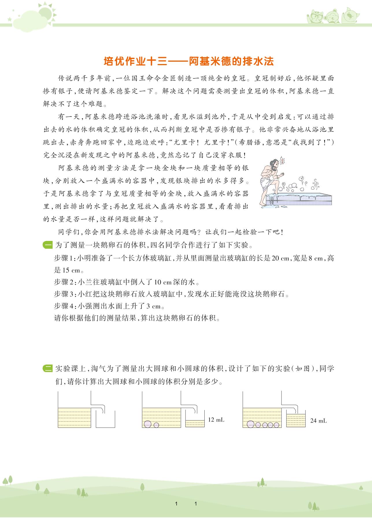 2021下册五年级数学北师版 第四单元 长方体(二)——培优作业十三 阿基米德的排水法