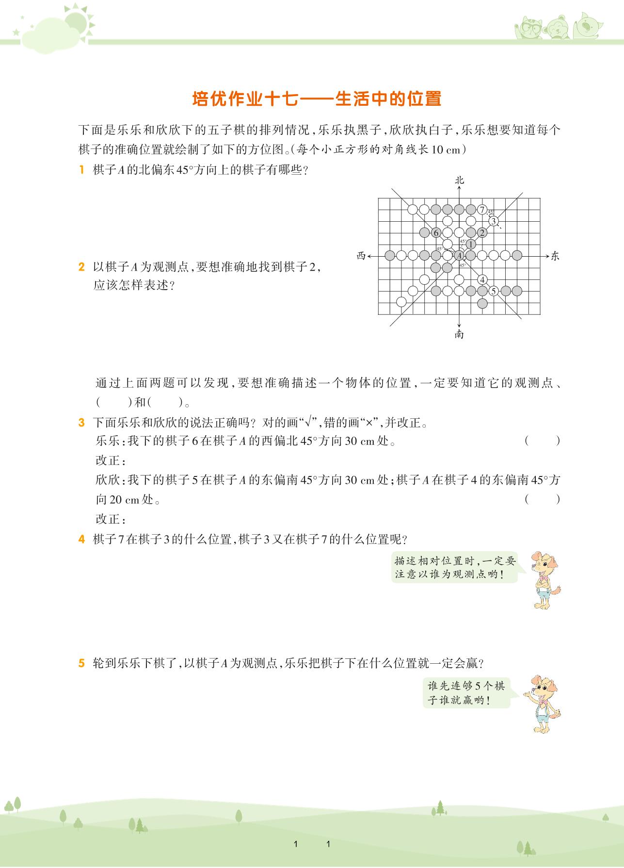 2021下册五年级数学北师版 第六单元 确定位置——培优作业十七 生活中的位置