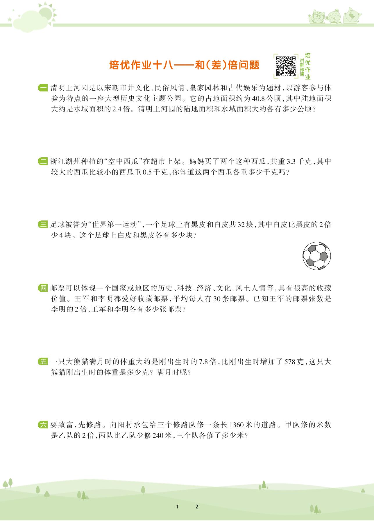 2021下册五年级数学北师版 第七单元 用方程解决问题——培优作业十八 和(差)倍问题