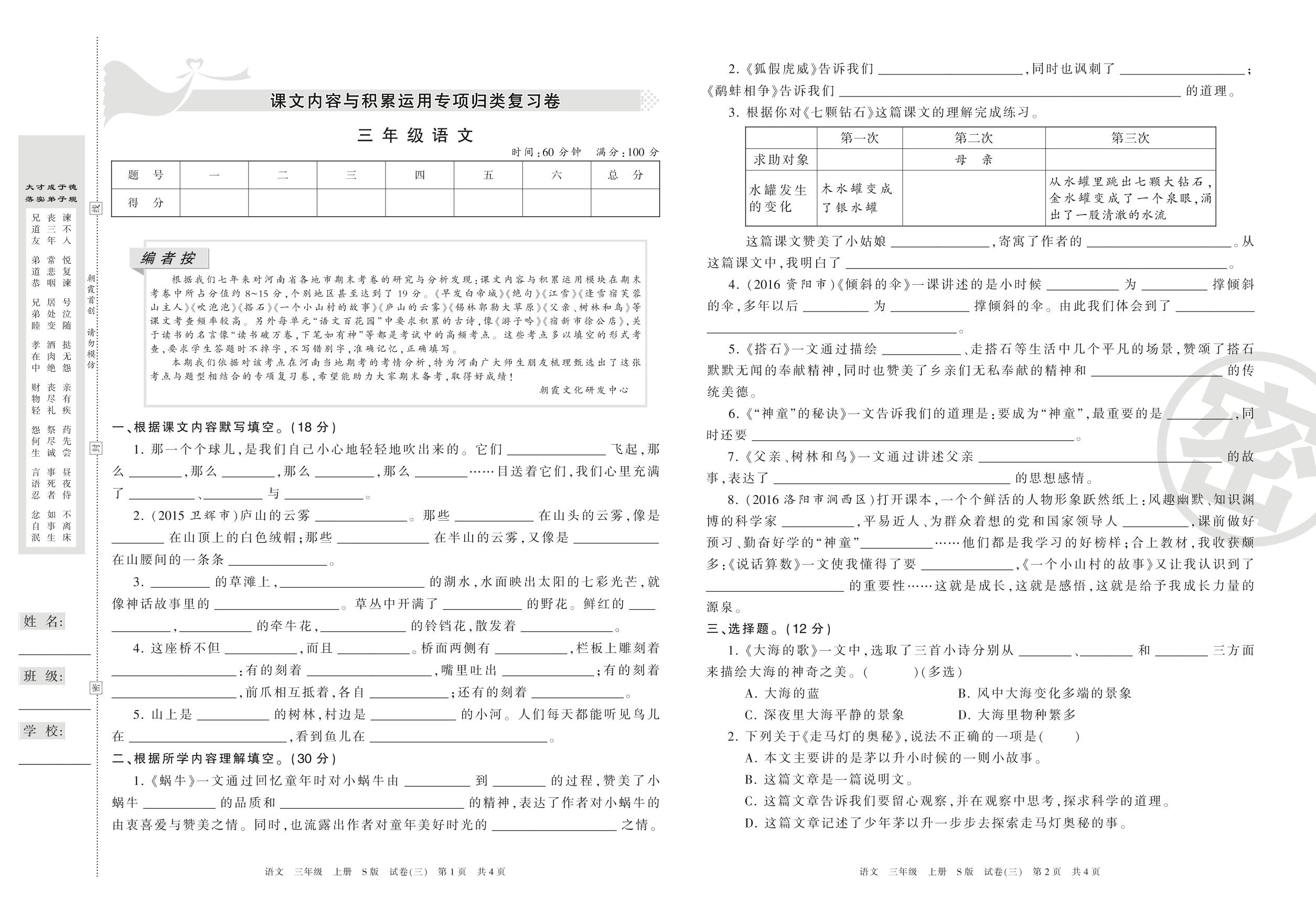 王朝霞期末专项卷三年级上册语文(S版)_R210801101817【3】