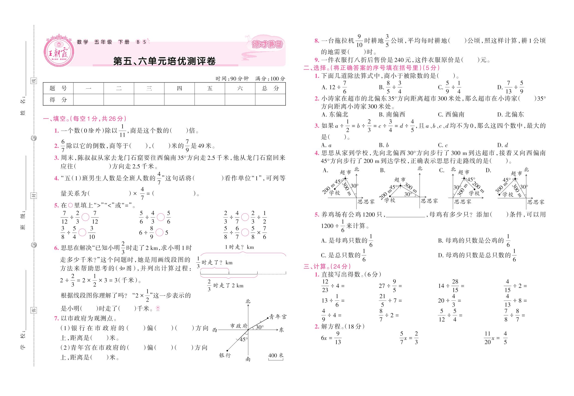 2021下册五年级数学北师版 第五、六单元培优测评卷