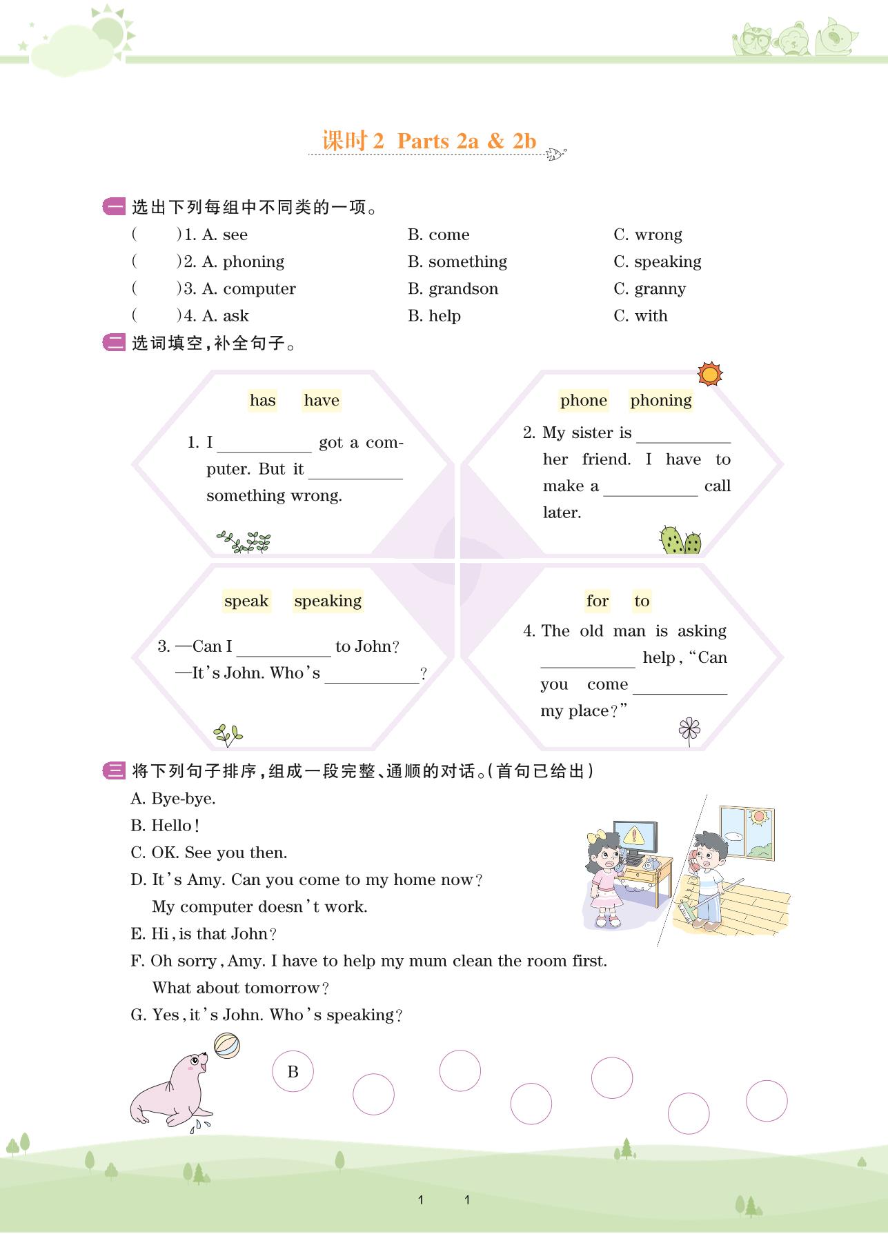 2021下册五年级英语剑桥版 Unit 1——课时 2 Parts 2a & 2b