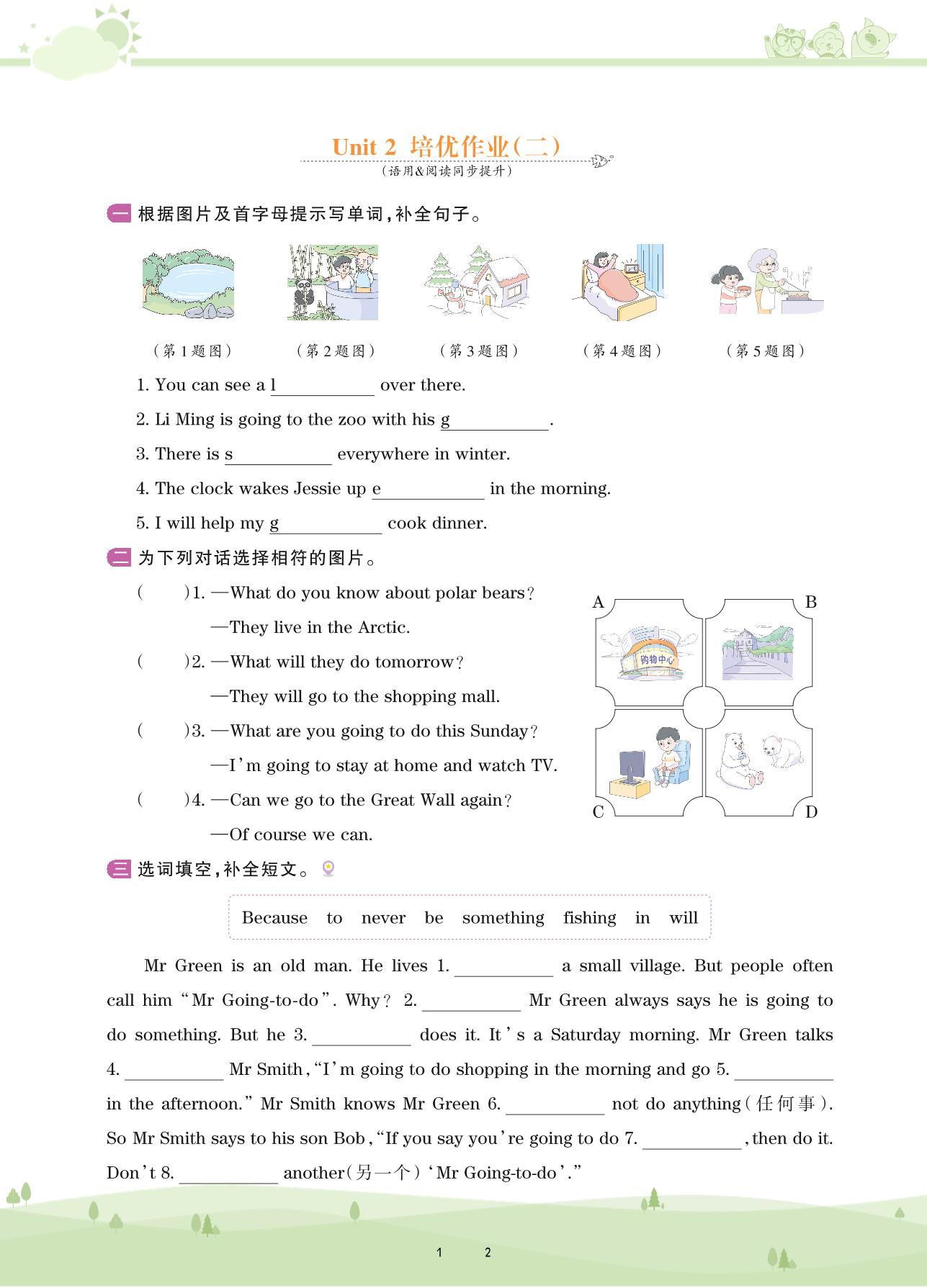 2021下册五年级英语剑桥版 Unit 2 培优作业(二)