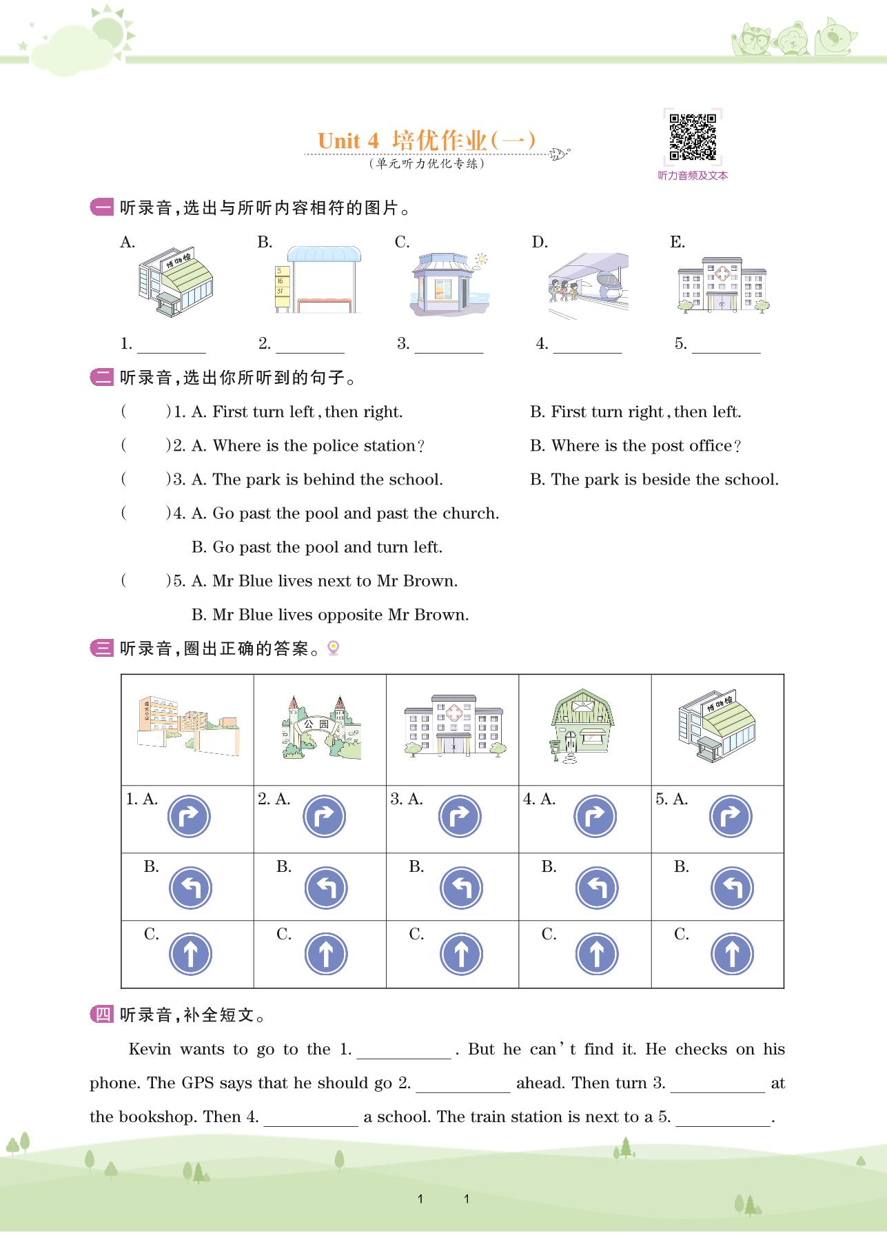 2021下册五年级英语剑桥版 Unit 4 培优作业(一)