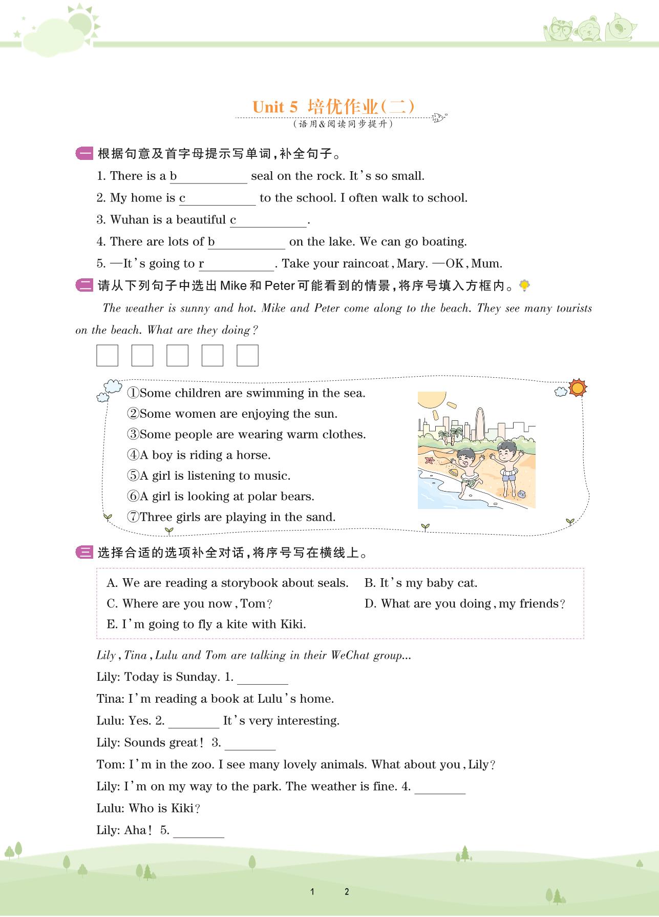 2021下册五年级英语剑桥版 Unit 5 培优作业(二)