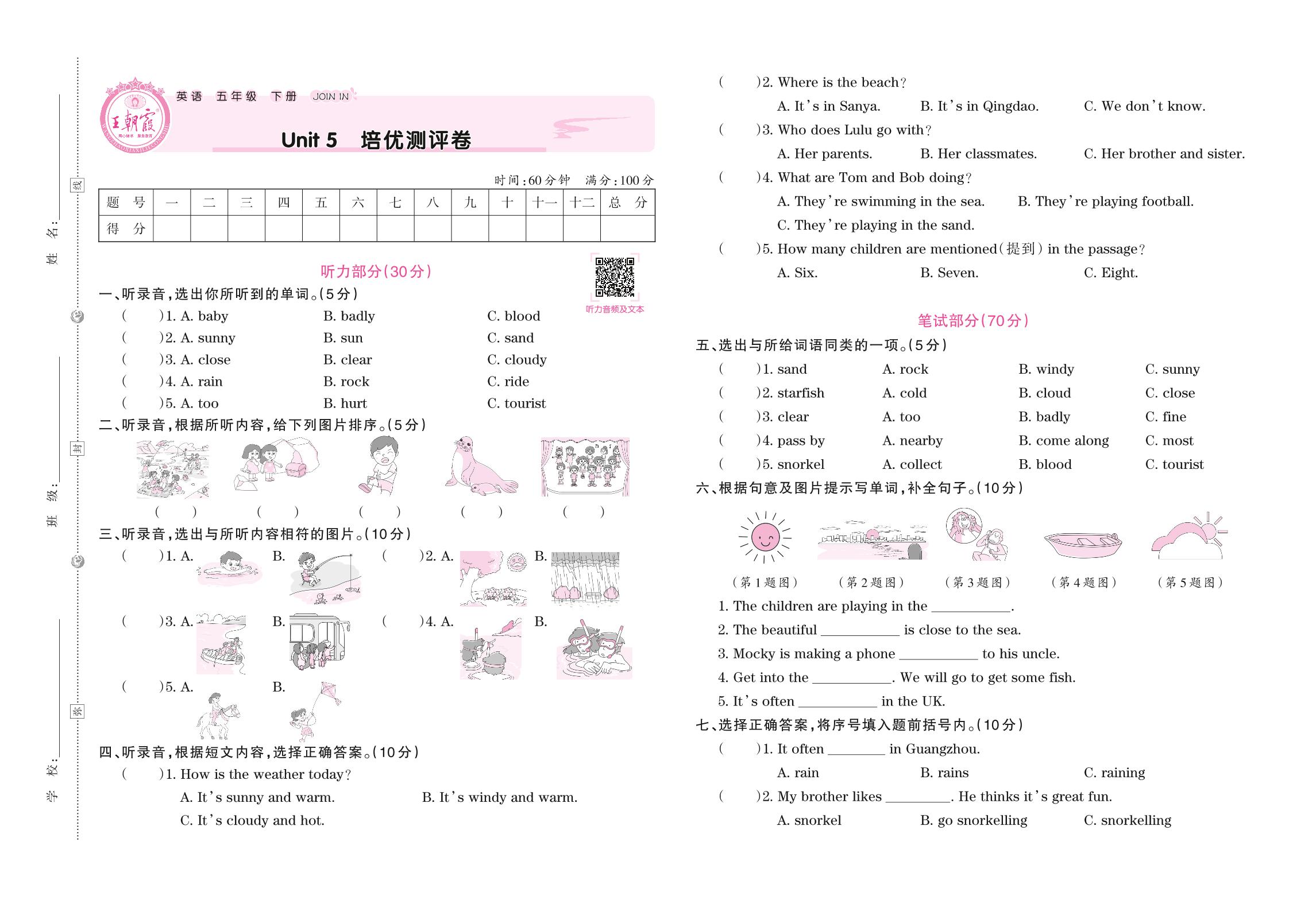 五年级英语剑桥版下册单元卷