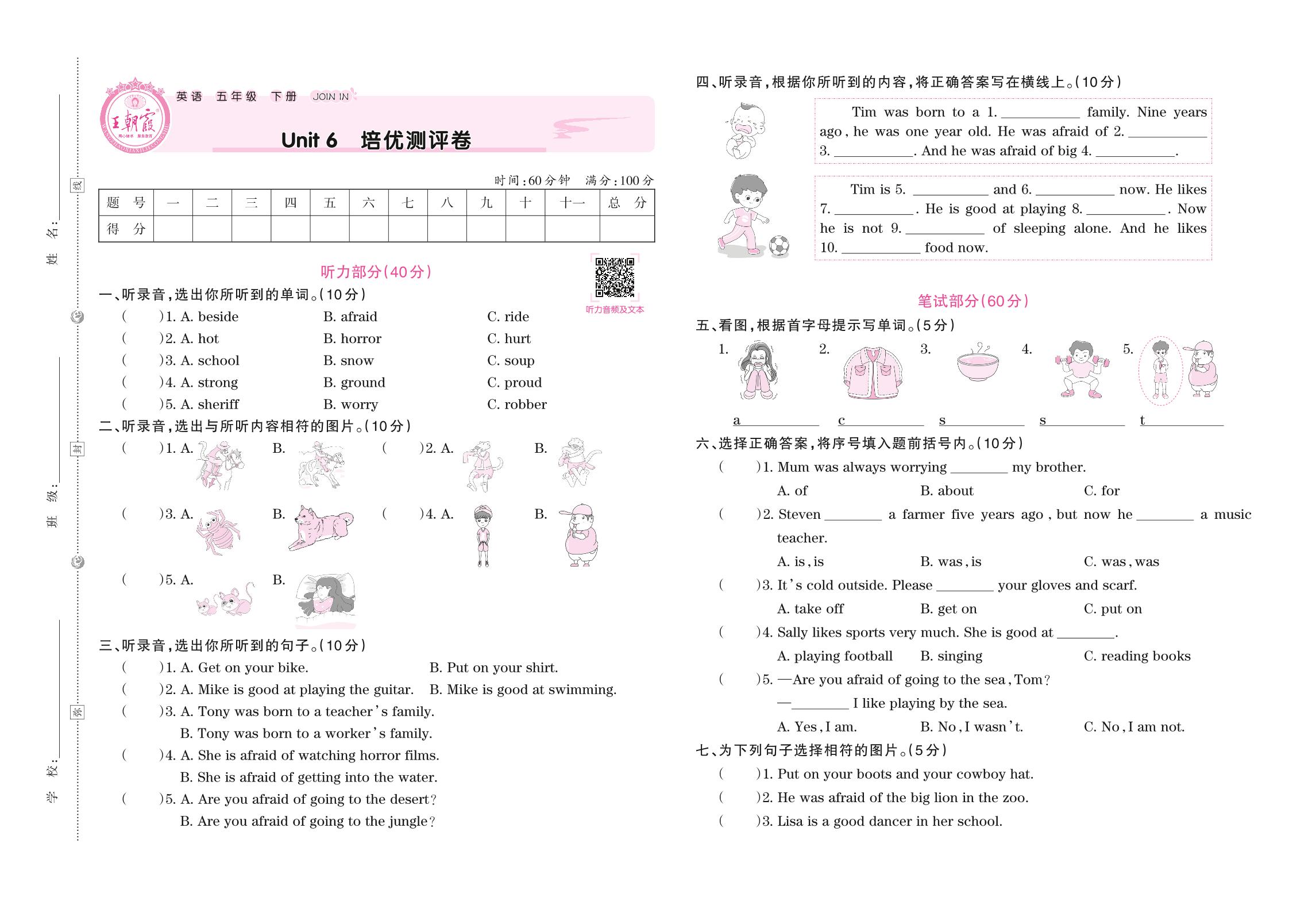 五年级英语剑桥版下册单元卷