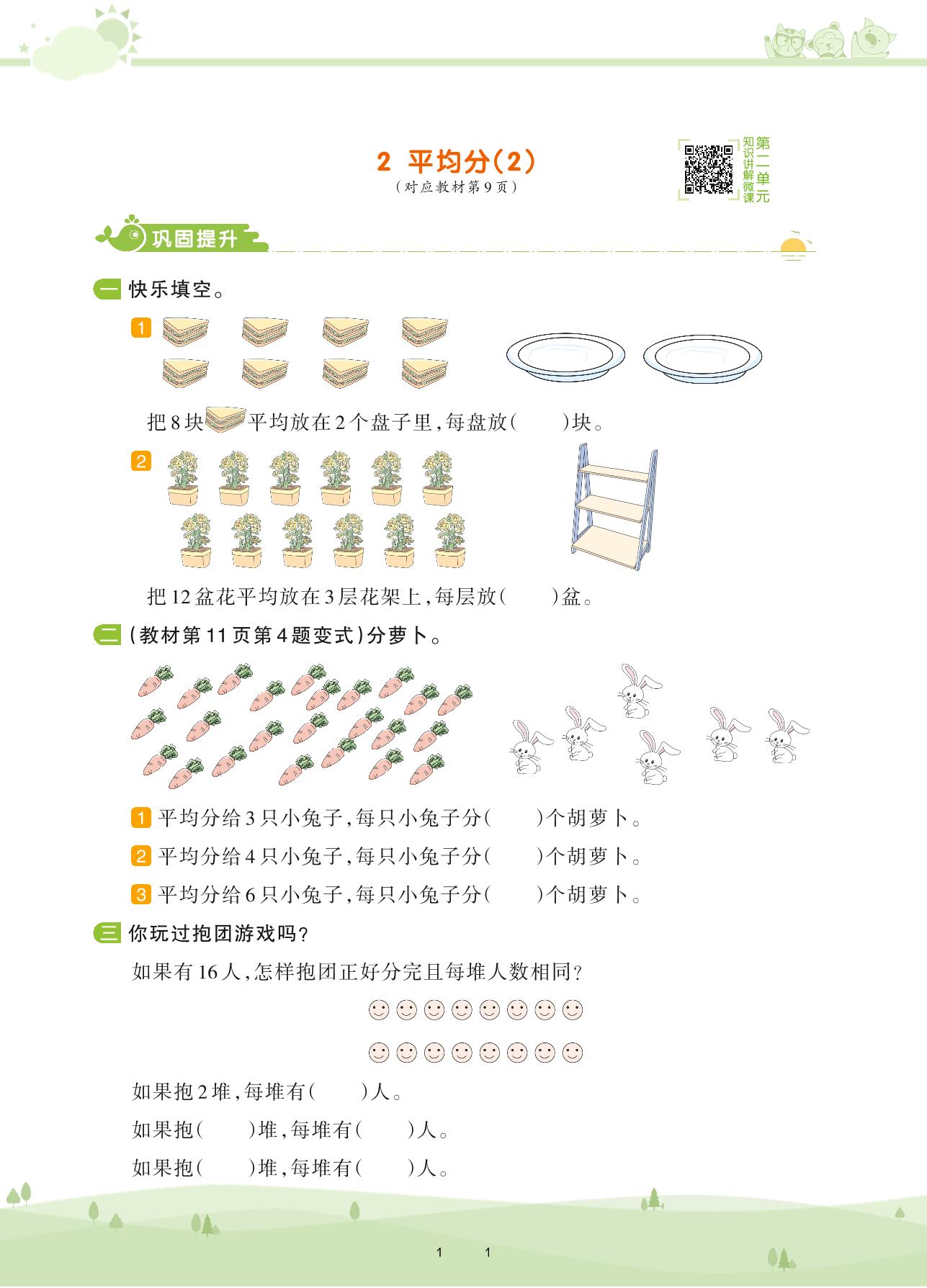 2021下册二年级数学人教版 第二单元 表内除法(一)——2 平均分(2)