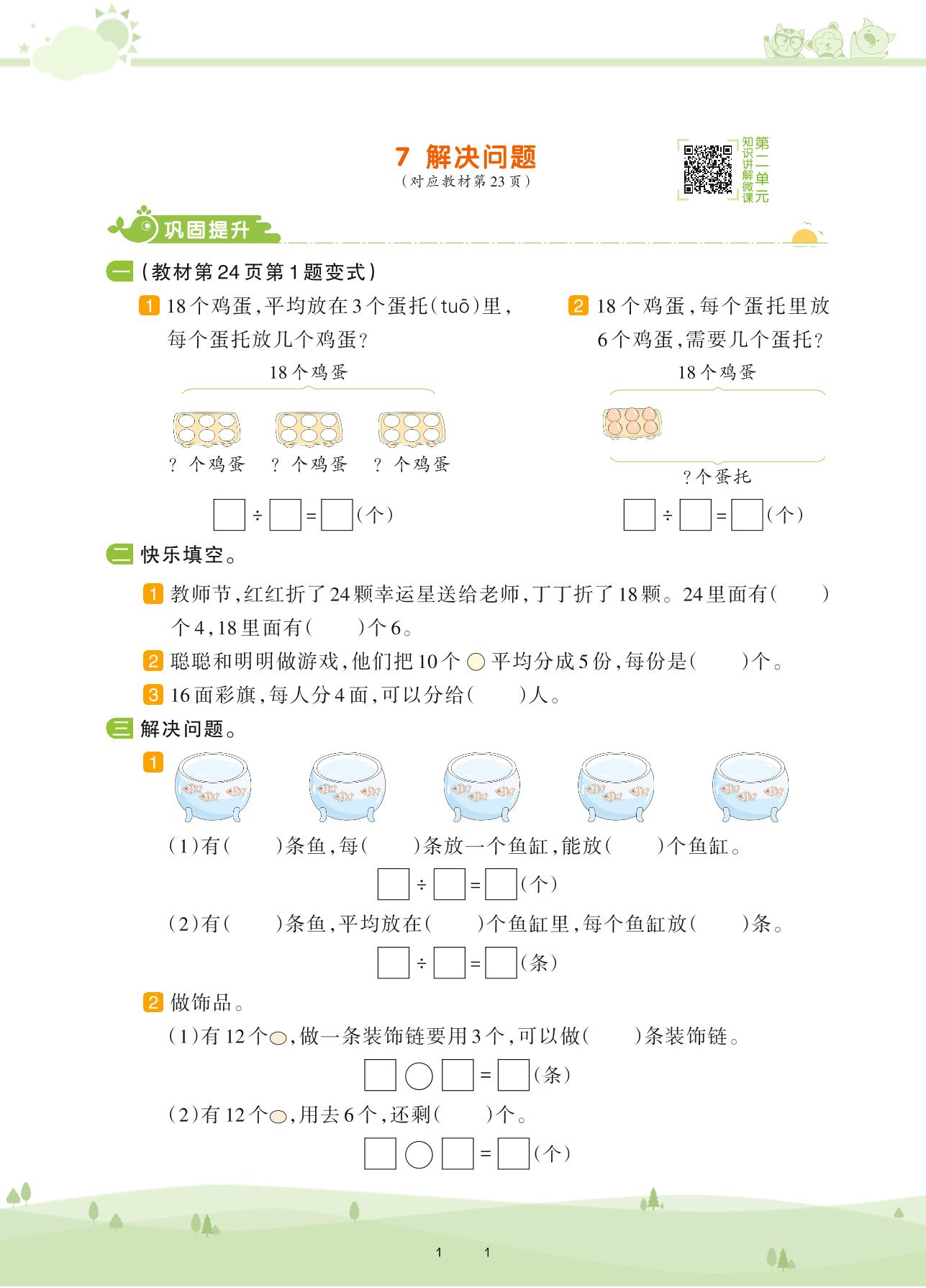 2021下册二年级数学人教版 第二单元 表内除法(一)——7 解决问题