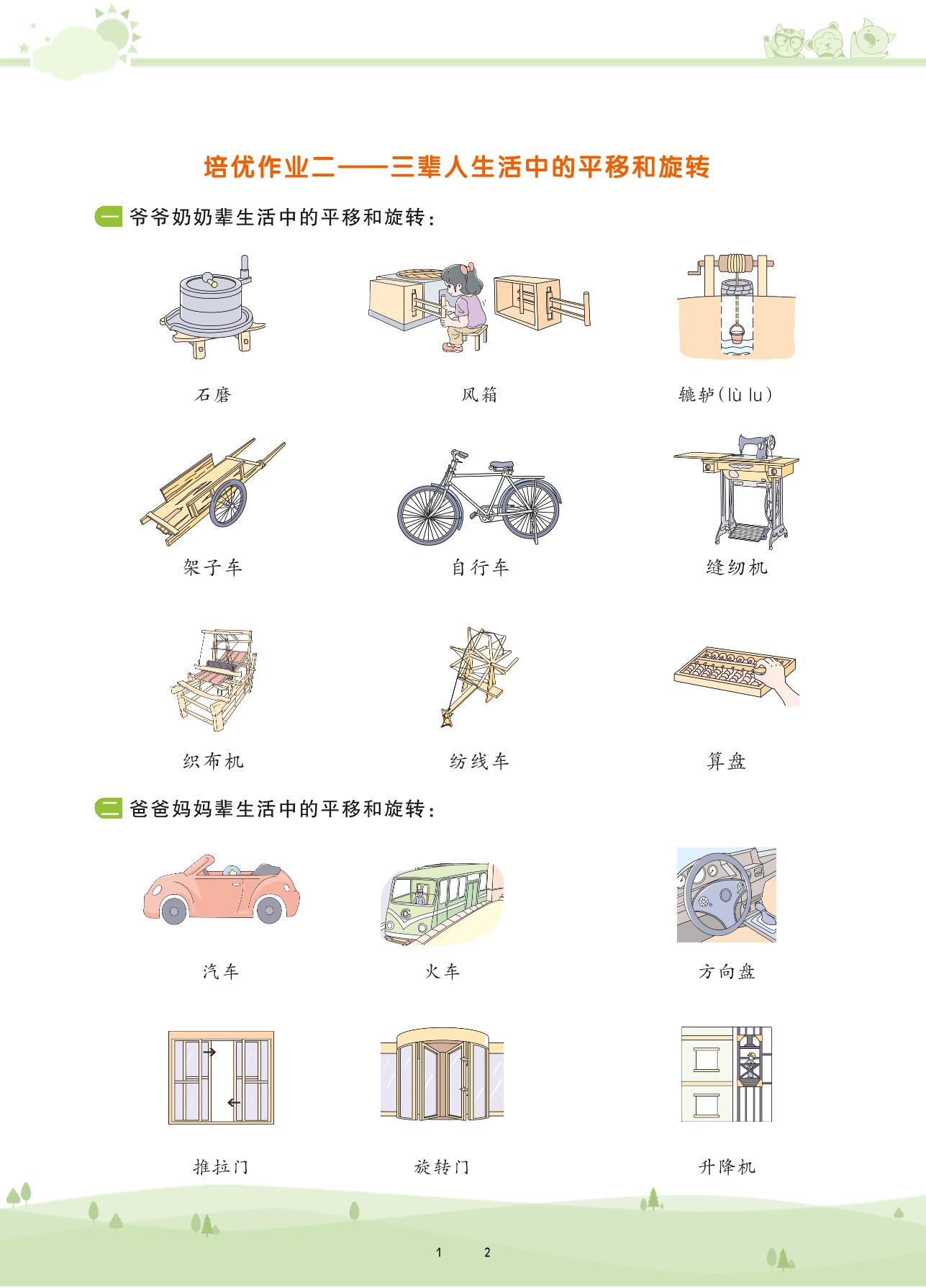 2021下册二年级数学人教版 第三单元 图形的运动(一)——培优作业二 三辈人生活中的平移和旋转