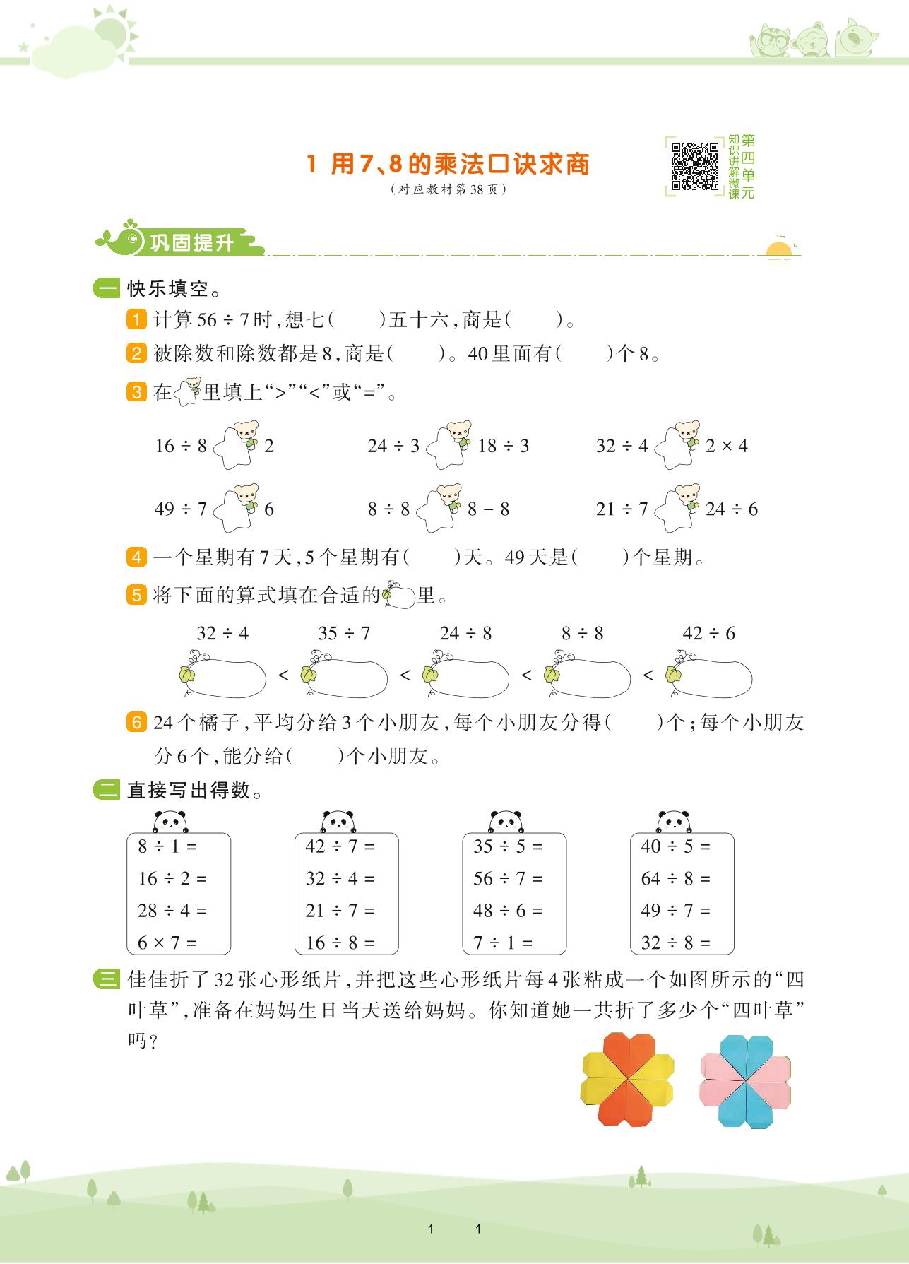 2021下册二年级数学人教版 第四单元 表内除法(二)——1 用7、 8的乘法口诀求商