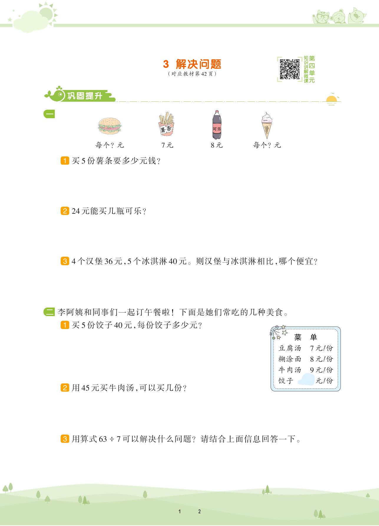 2021下册二年级数学人教版 第四单元 表内除法(二)——3 解决问题