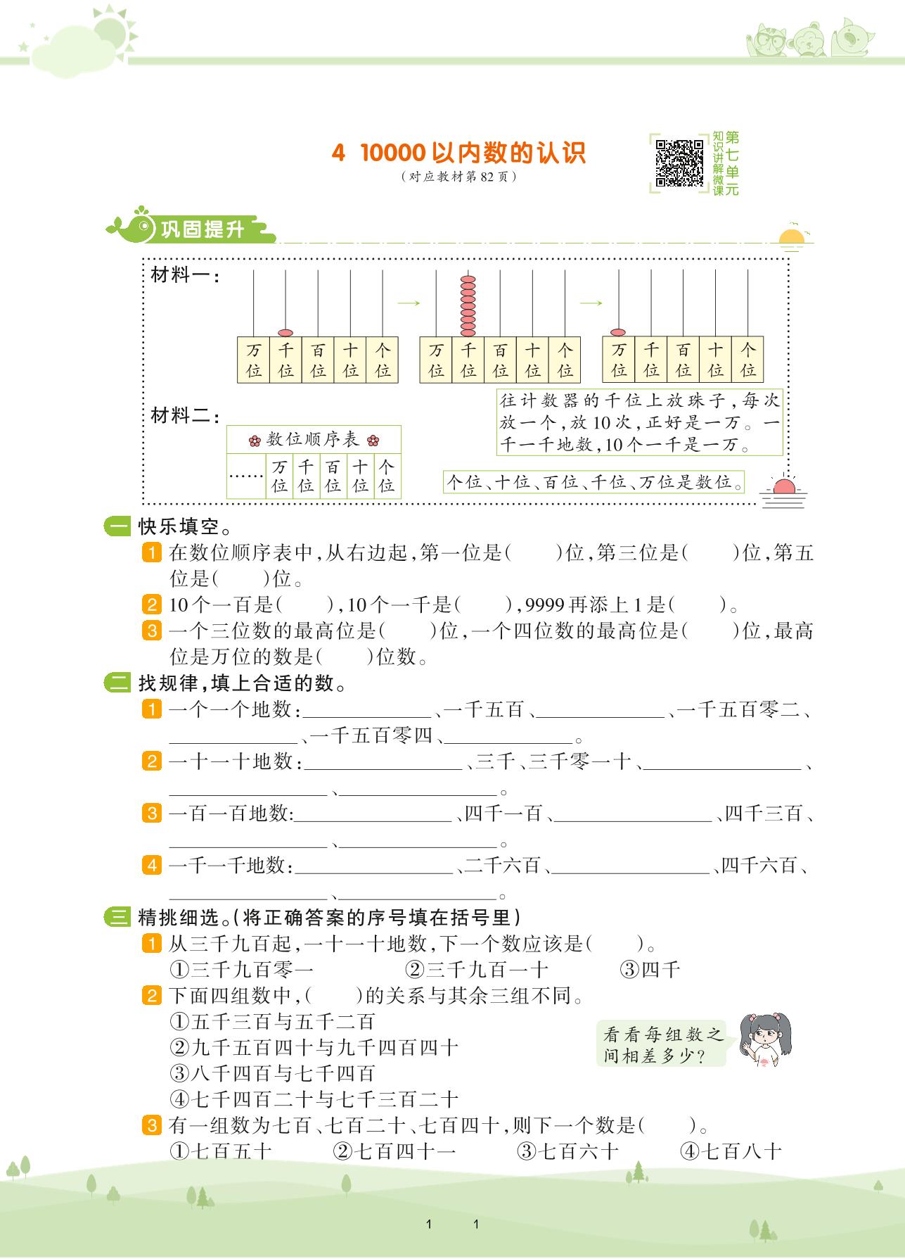 2021下册二年级数学人教版 第七单元 万以内数的认识——4 10000以内数的认识