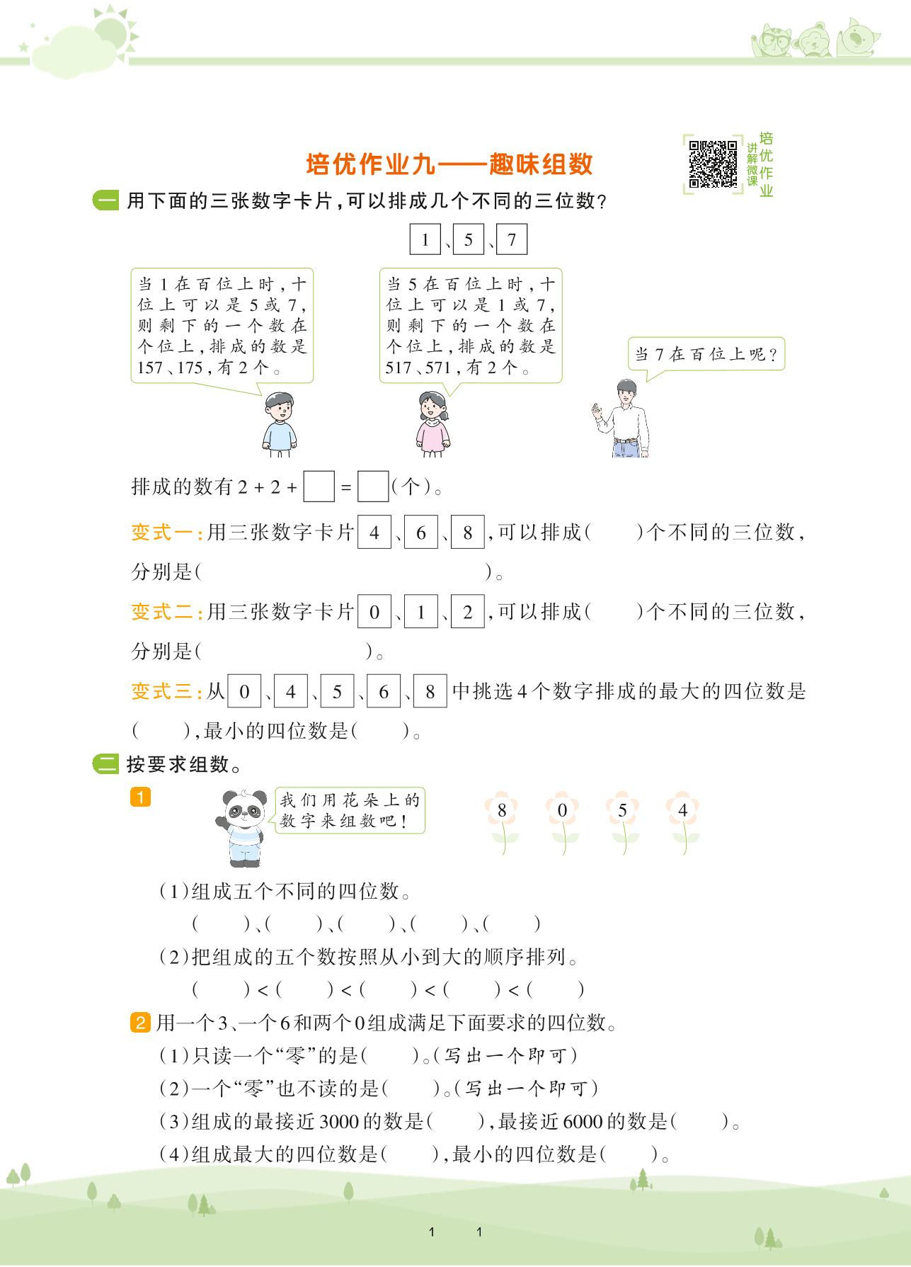 2021下册二年级数学人教版 第七单元 万以内数的认识——培优作业九 趣味组数