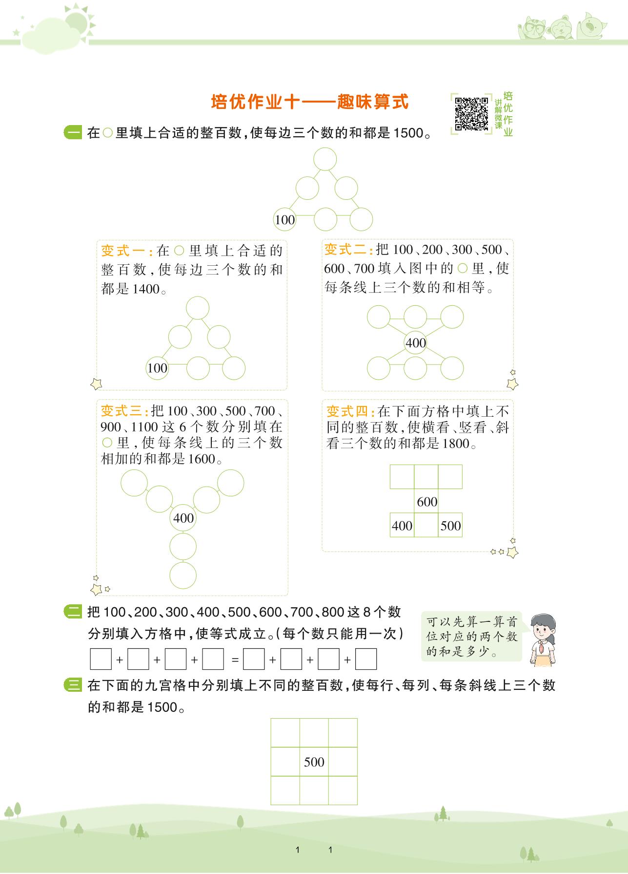 2021下册二年级数学人教版 第七单元 万以内数的认识——培优作业十 趣味算式